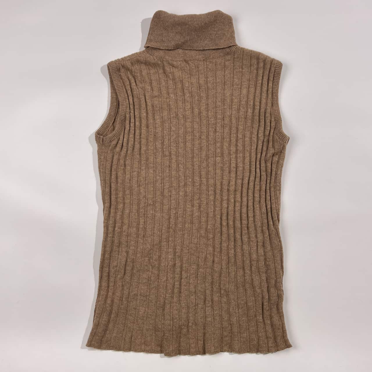 カシミヤ100% DOU タートルネック リブ編み ノースリーブ ニット セーター /ベージュ レディース