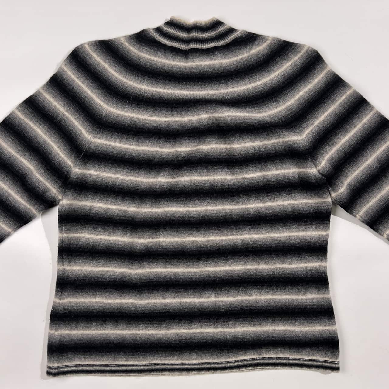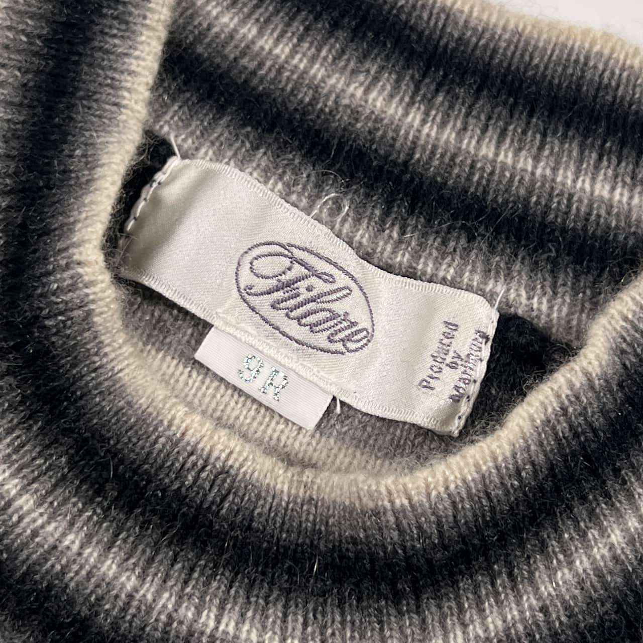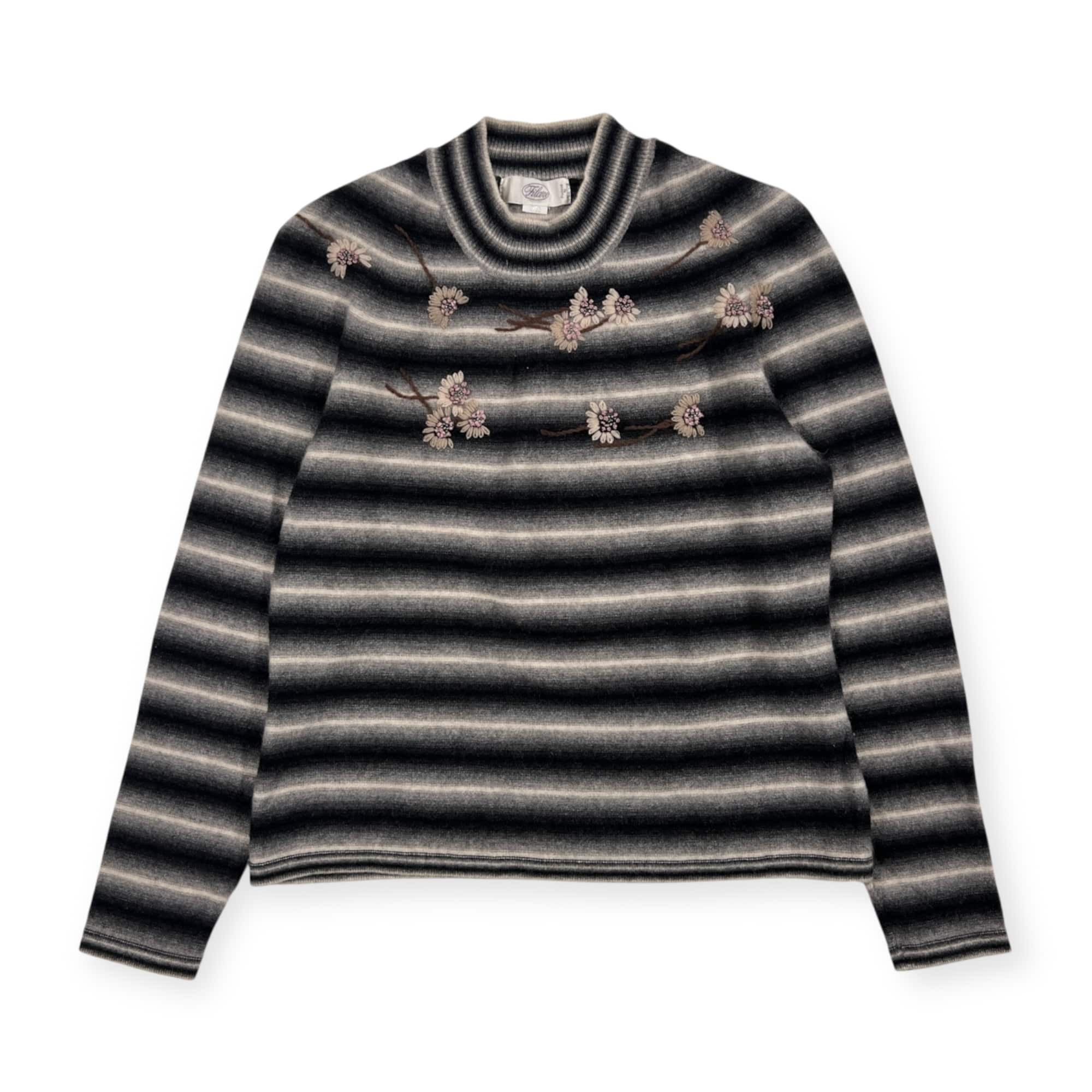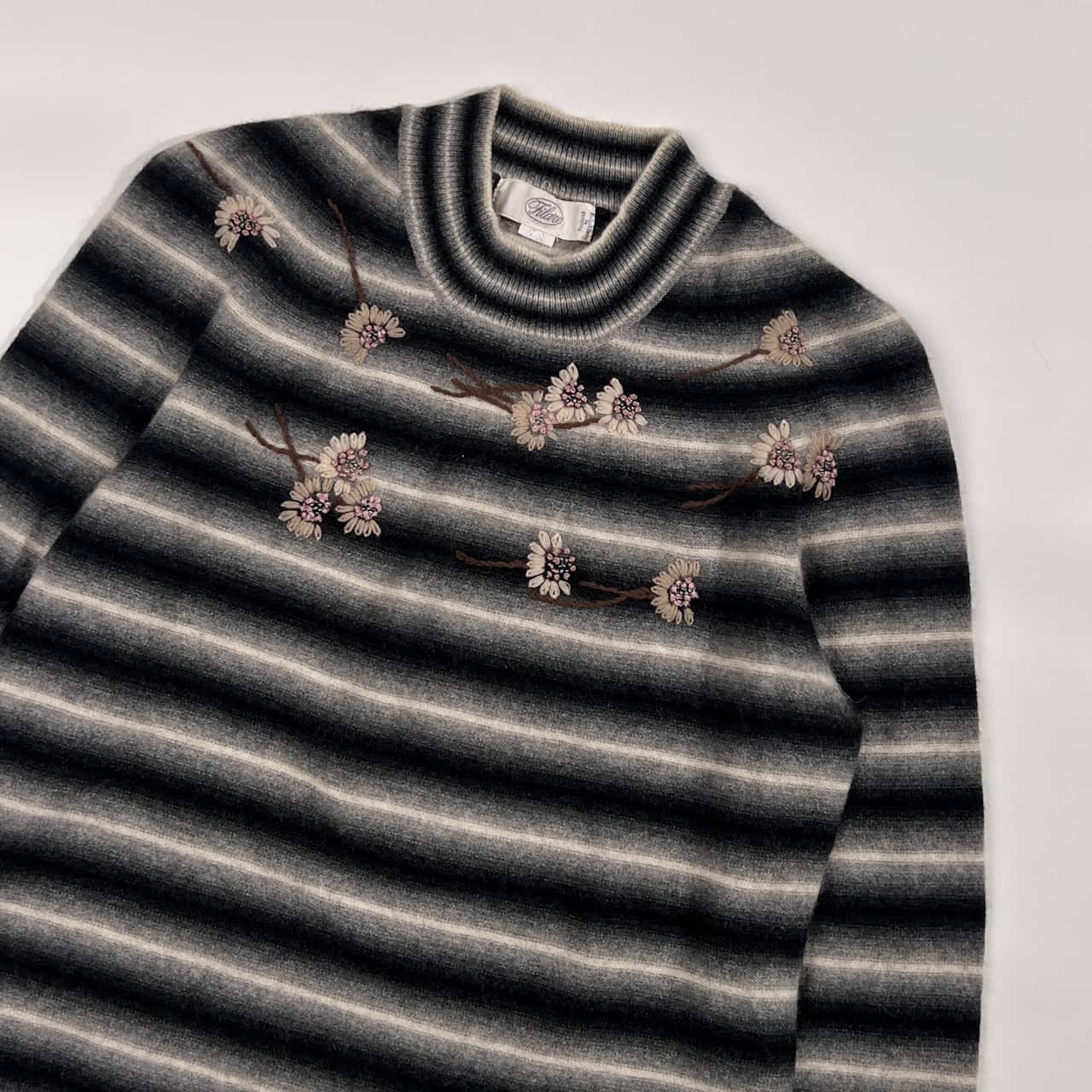 カシミヤ100% Filare フィラーレ ボーダー 花柄刺繍 ニット セーター 9R/グレー系 レディース
