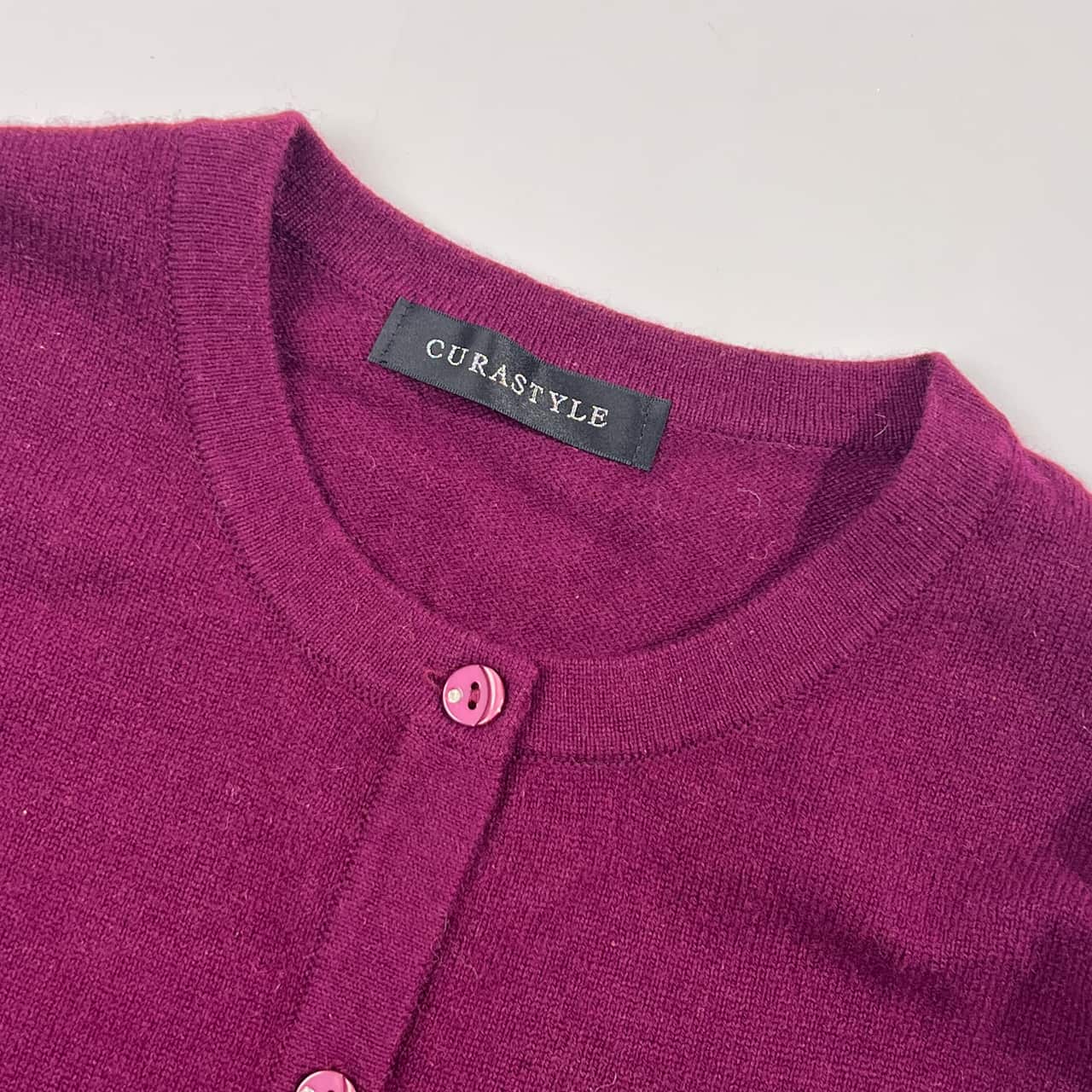 カシミヤ100% 新品 タグ付き CURASTYLE キュアスタイル ニット カーディガン F/パープル レディース