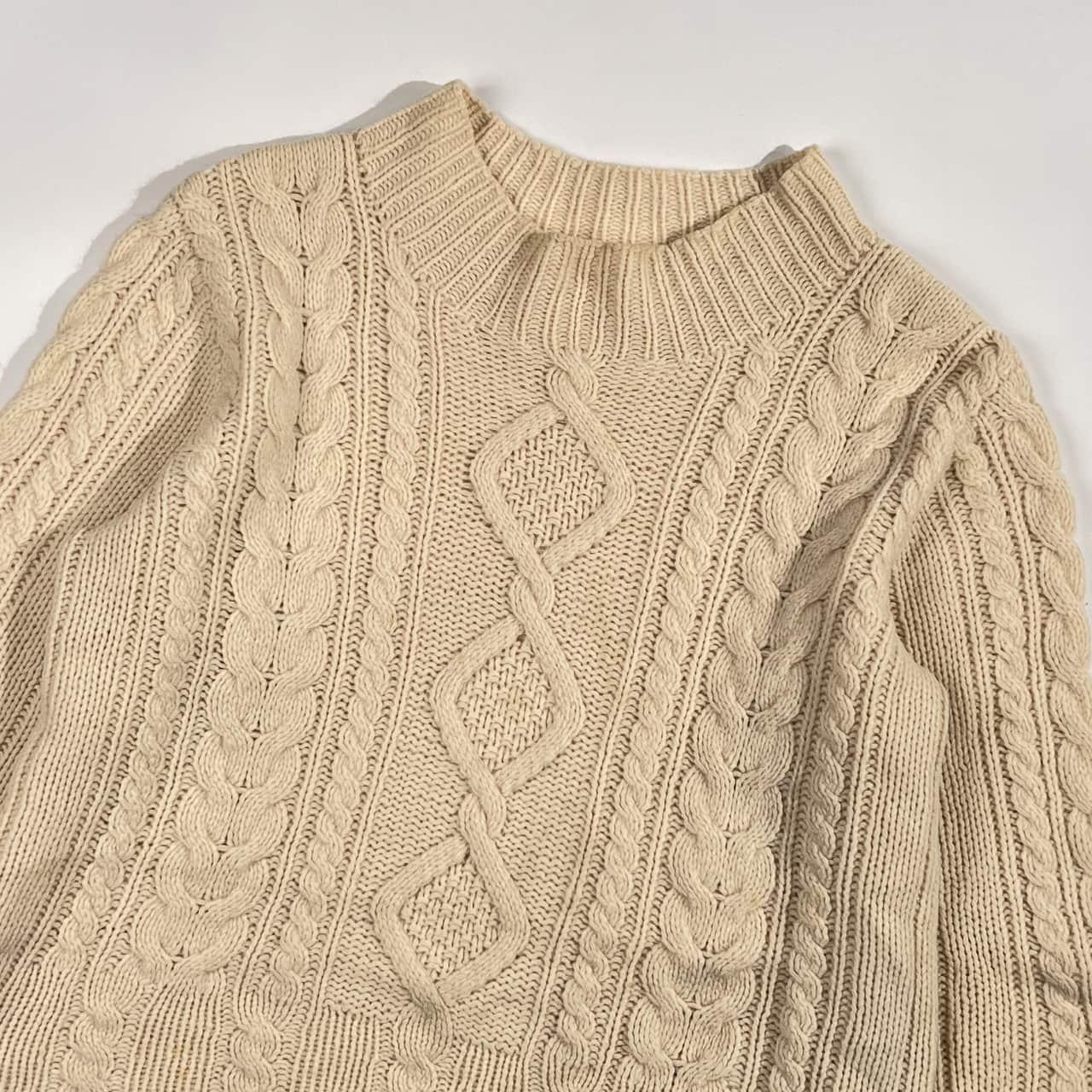 カシミヤ100% DIOFIL ディオフィール ケーブル編み ニット セーター 38/ホワイト アイボリー 系 レディース