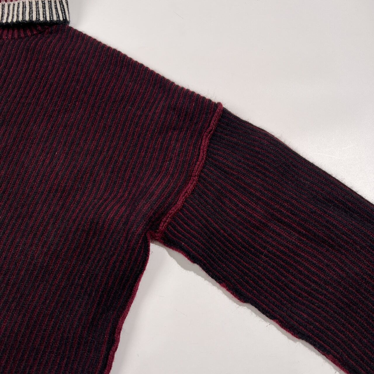 カシミヤ100% Theory セオリー タートルネック ワイド ニット セーター サイズ L /ブラック×ボルドー系