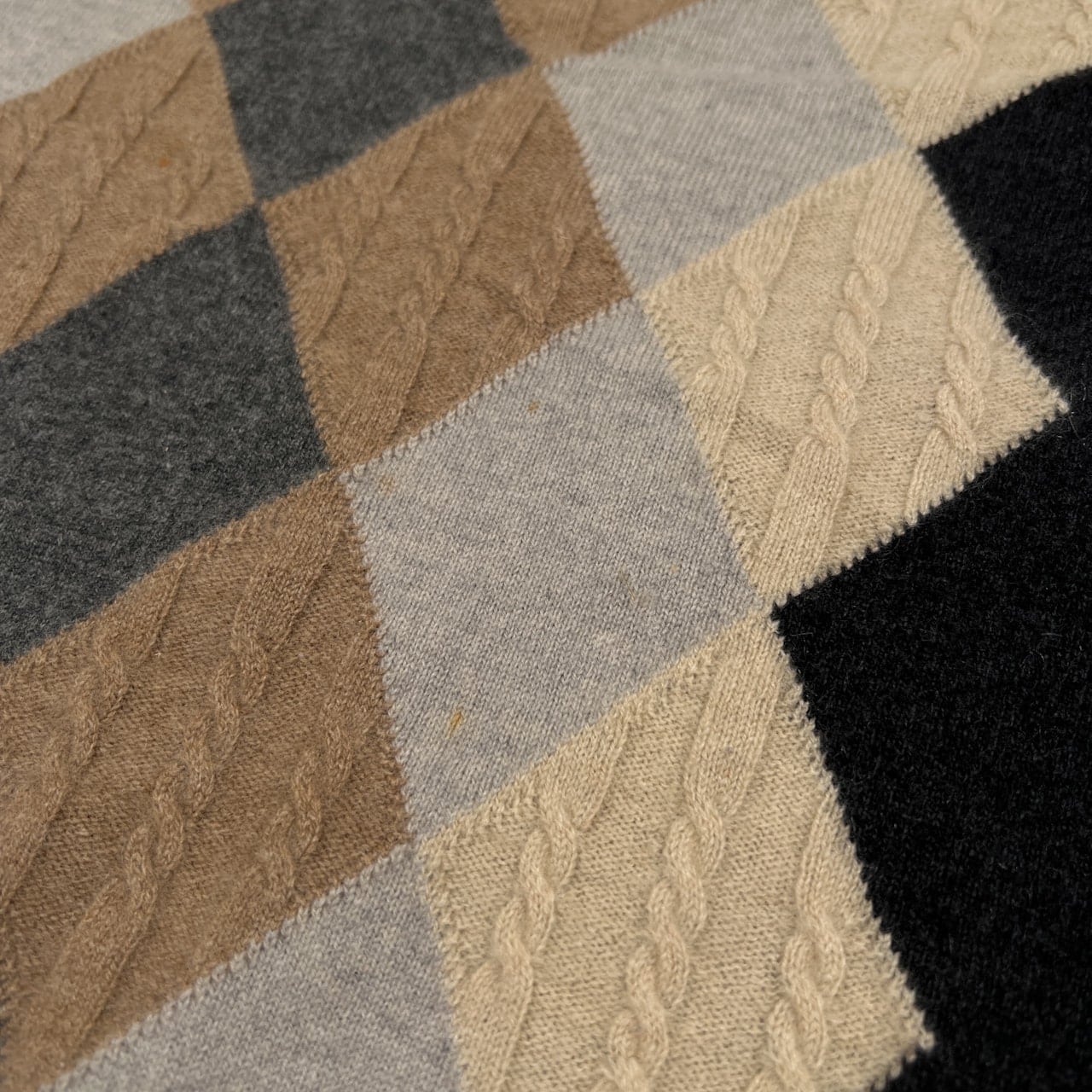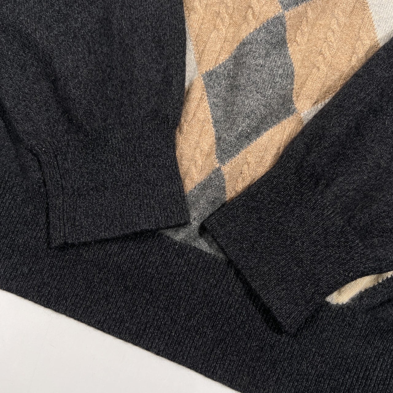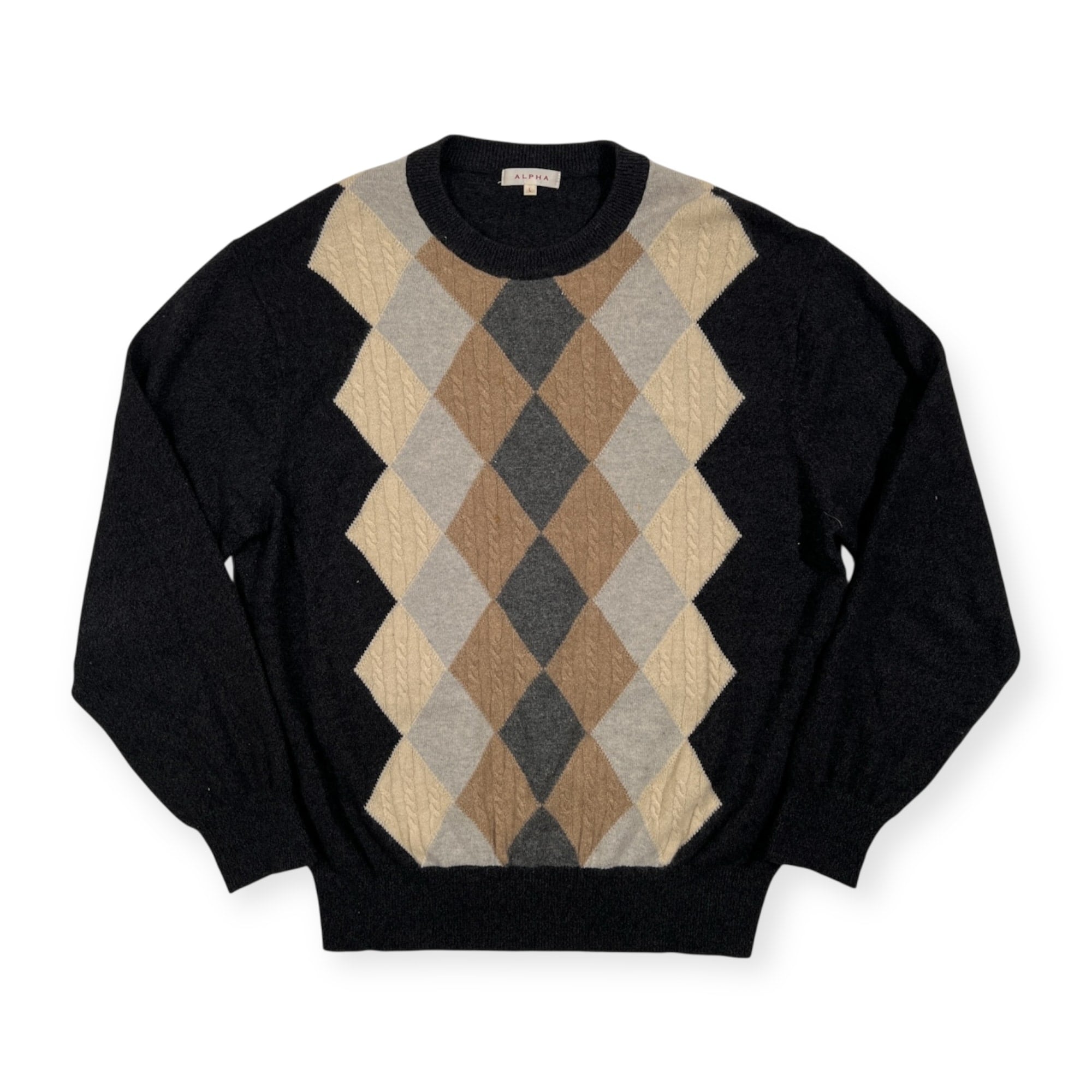 カシミヤ100% ALPHA アルファ アーガイル柄 ケーブル編み カシミア ウール ニット セーター サイズ L /レディース