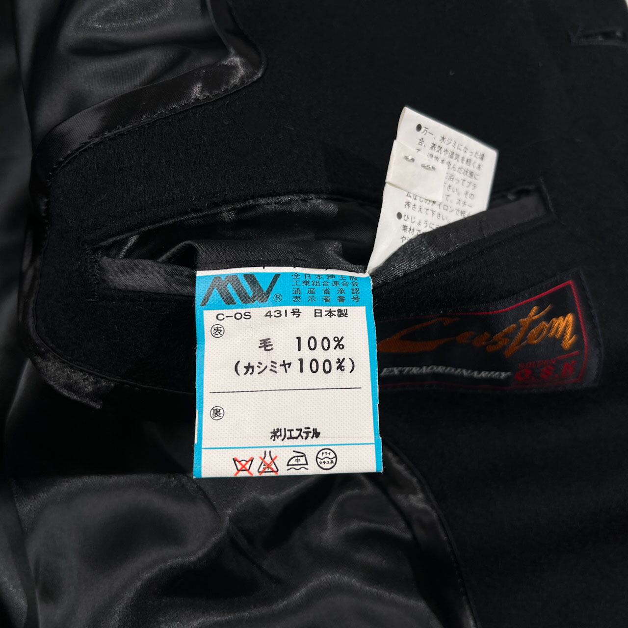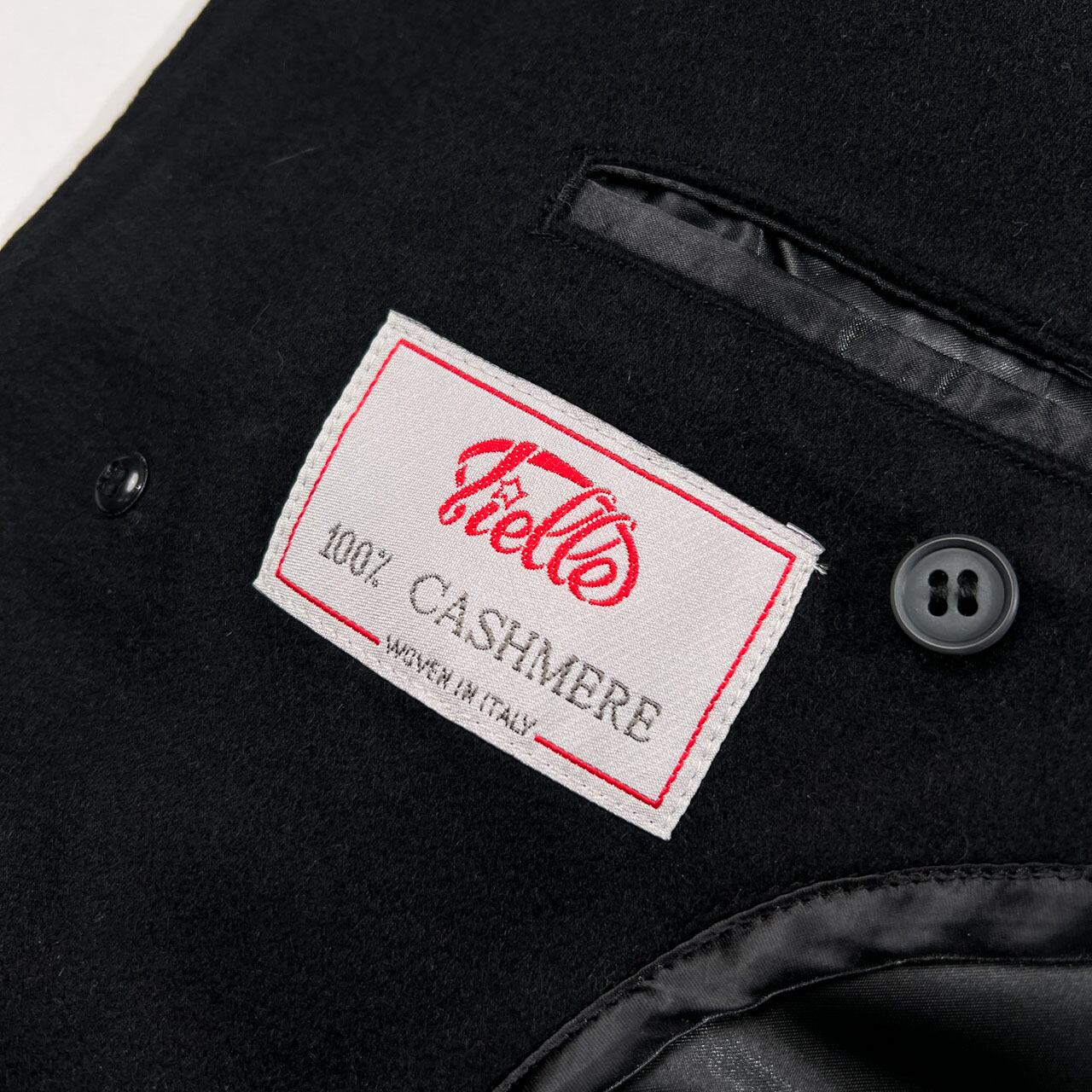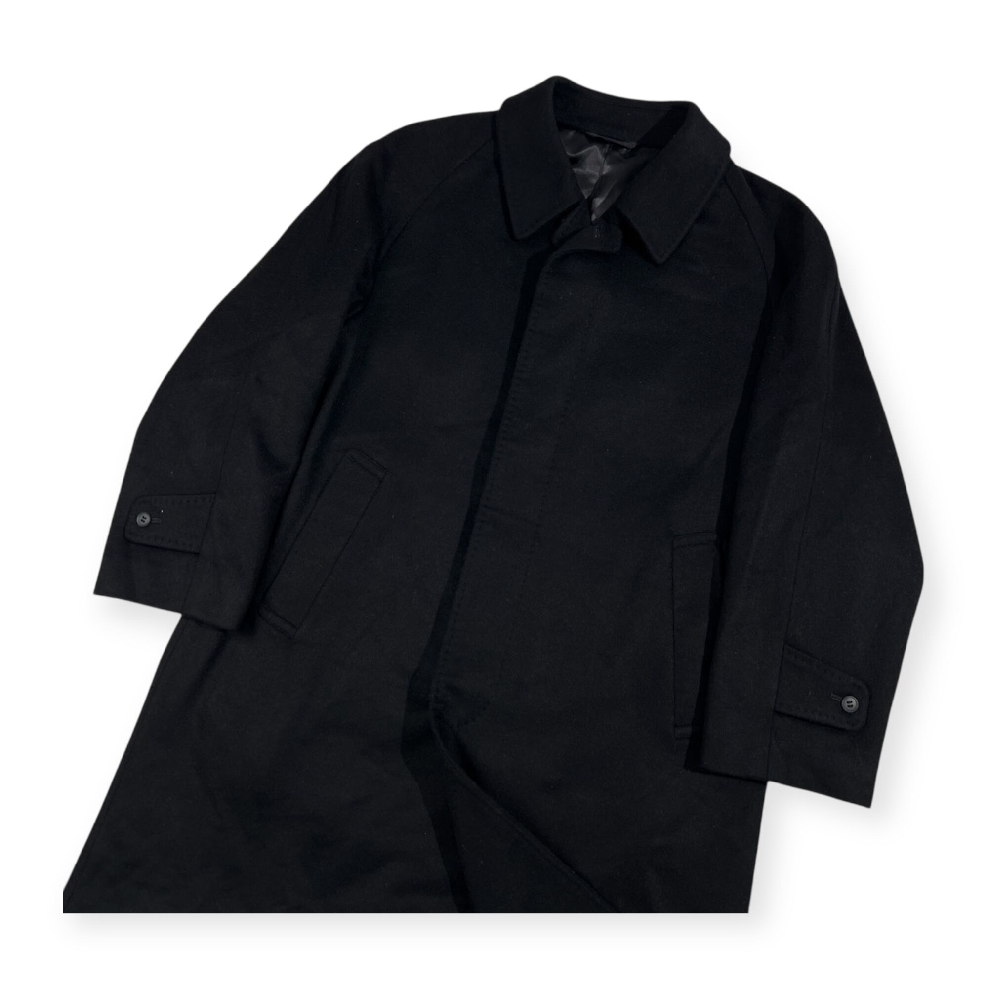 カシミヤ100% Tielle イタリア製生地 比翼 ステンカラーコート サイズ A3 (L~XL程度) /メンズ/ブラック