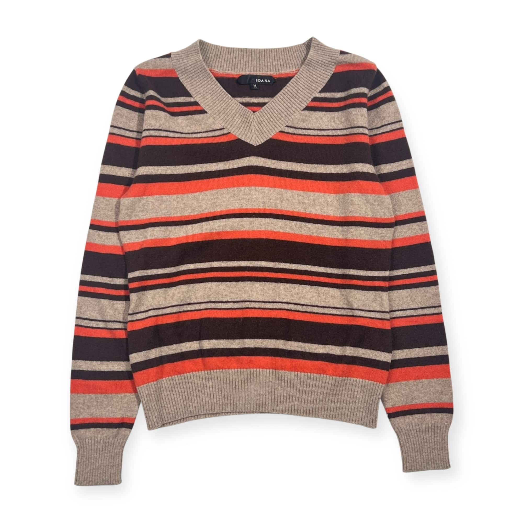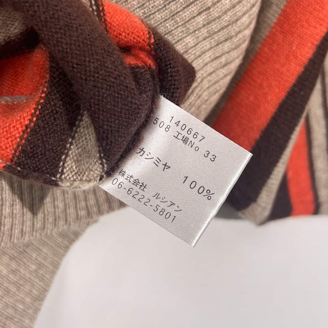 カシミヤ100% IDANA イダーナ Vネック ボーダー ニット セーター M/ベージュ系 レディース