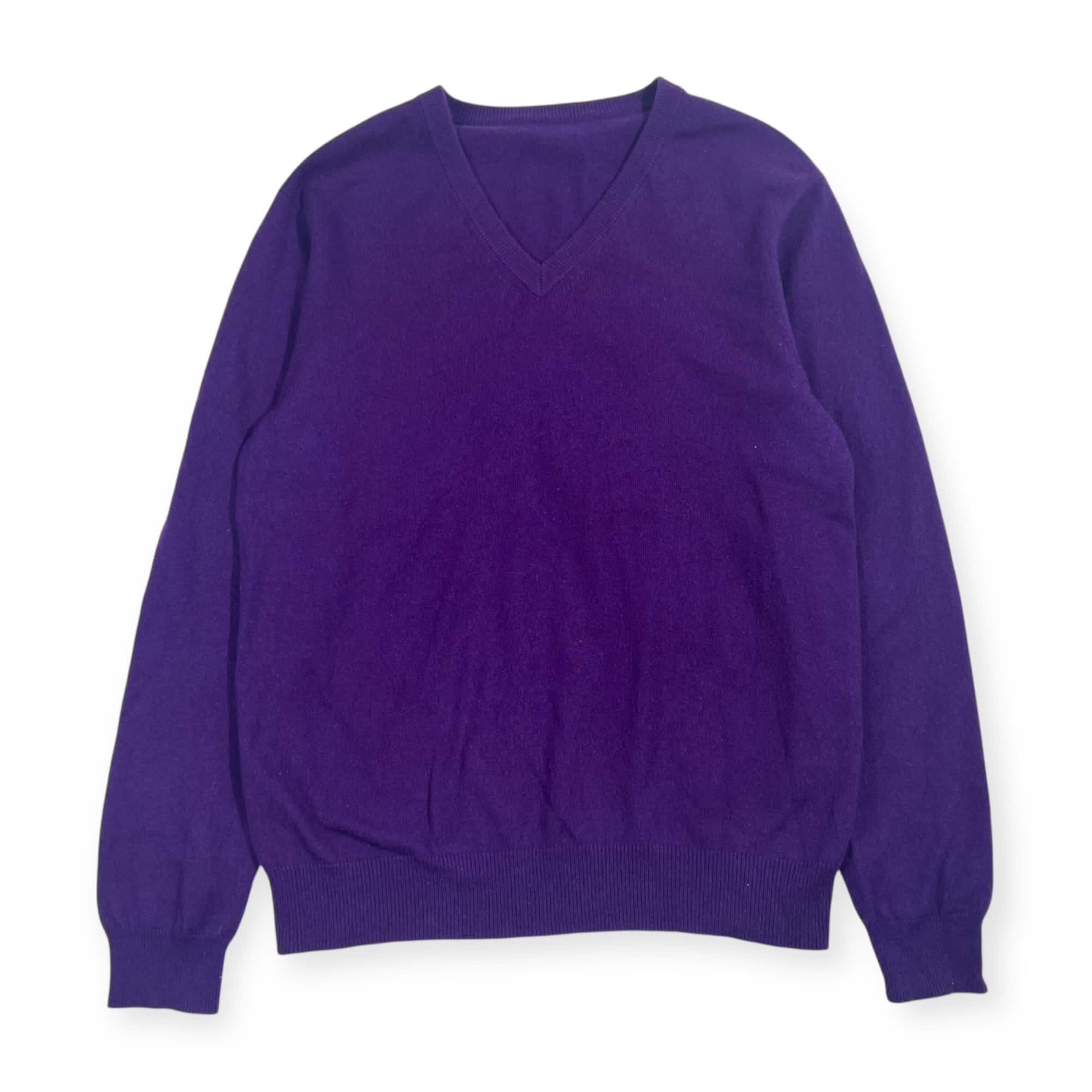 カシミヤ100% UNIQLO ユニクロ Vネック ネップ風 ニット セーター L/パープル メンズ