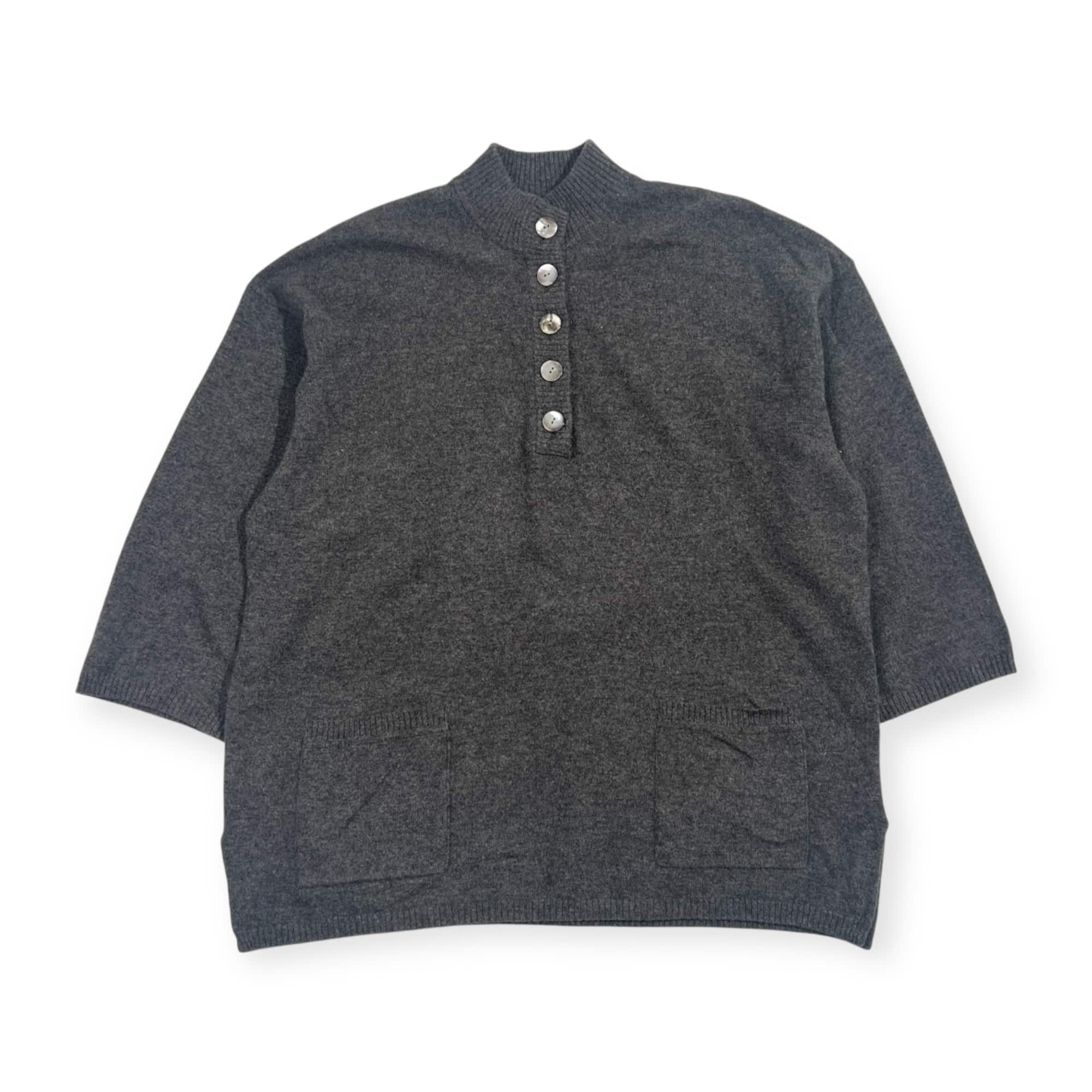 カシミヤ100% CASHMERE カシミヤ ハーフボタン チュニック丈 ニット セーター L/グレー レディース