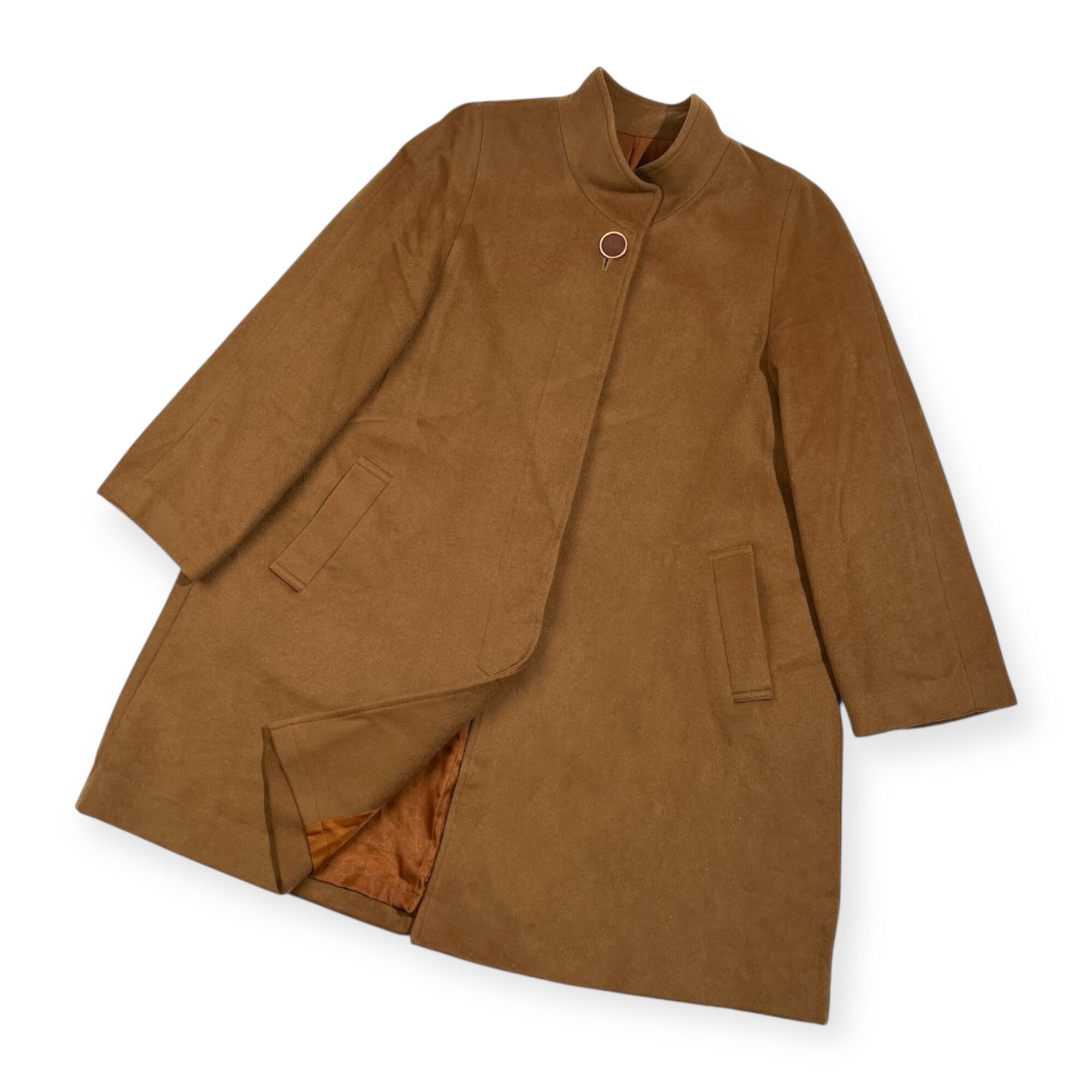 カシミヤ100% Cashmere ハイネック カシミア ウール コート /キャメル/レディース