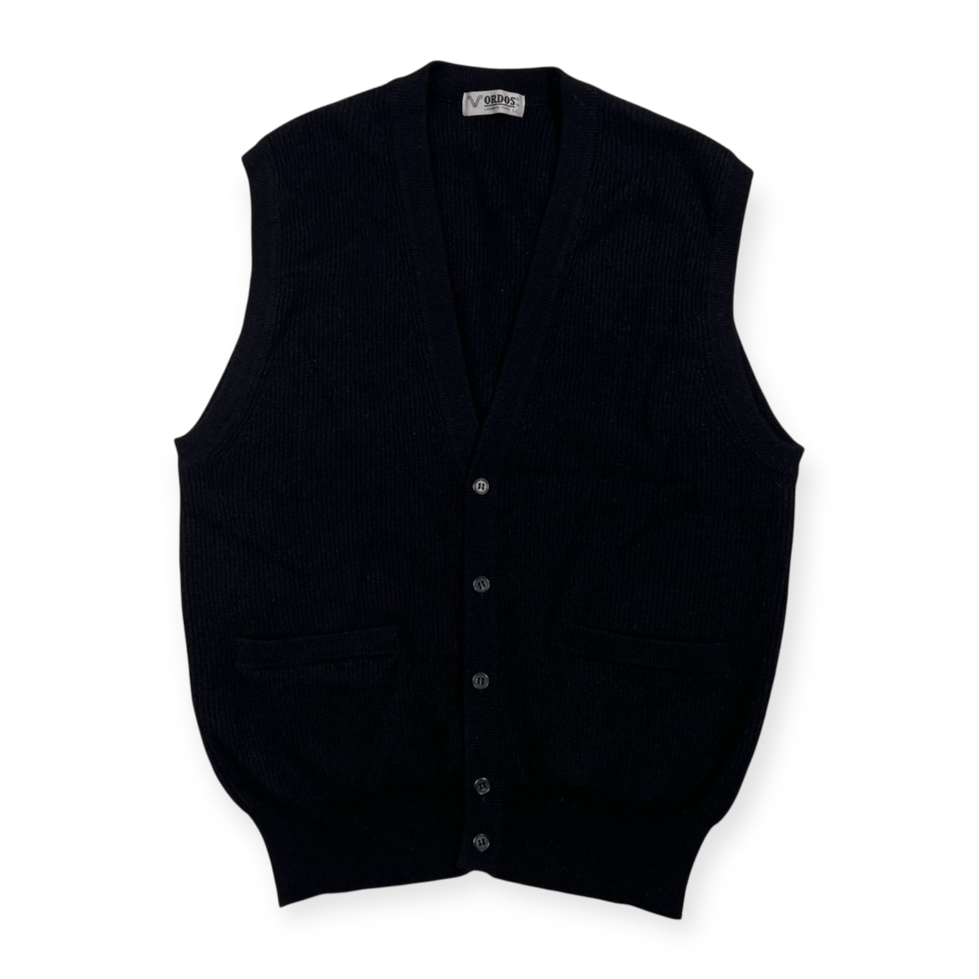カシミヤ100% ORDOS オルドス 前ボタン カシミア ウール ベスト サイズ LL /メンズ/ブラック