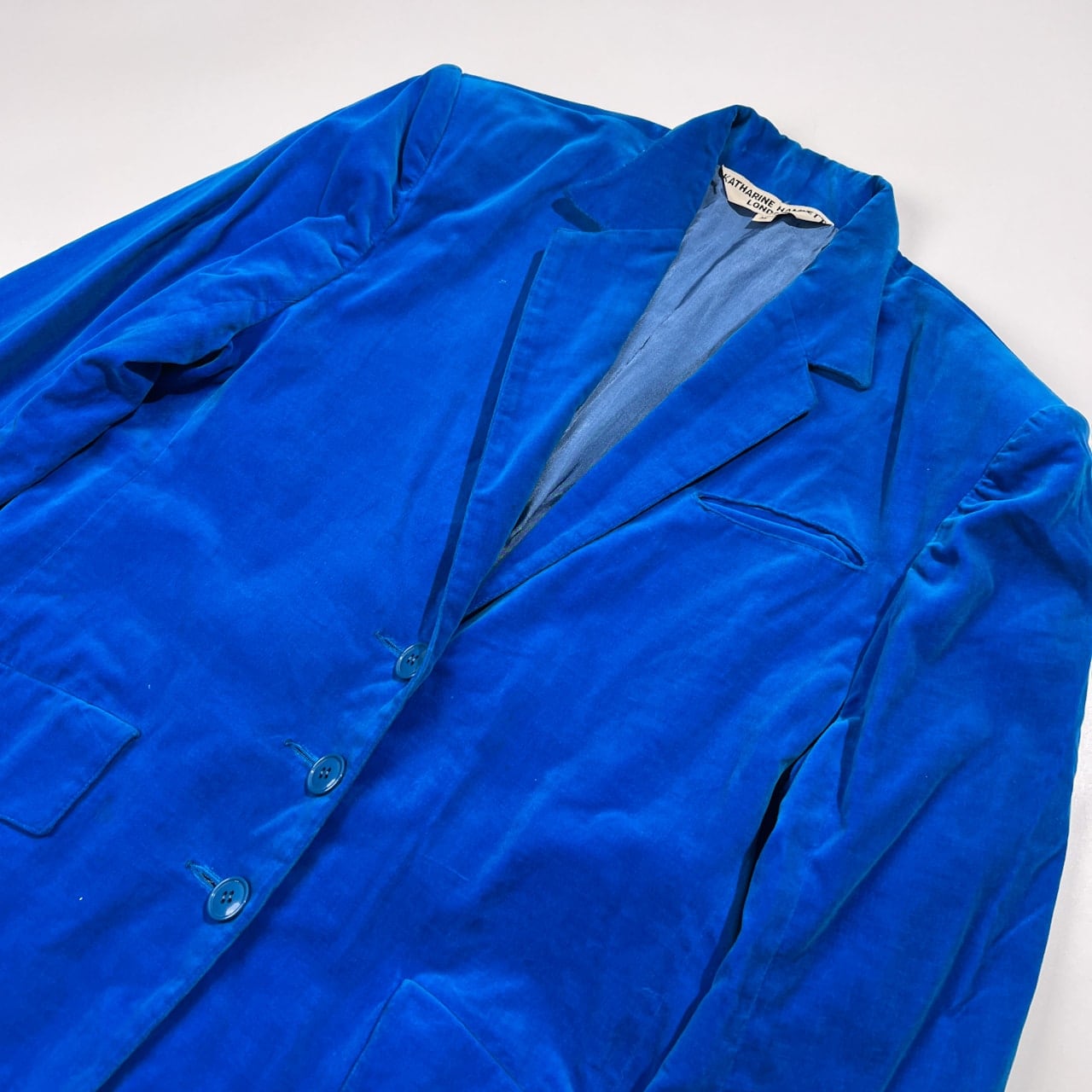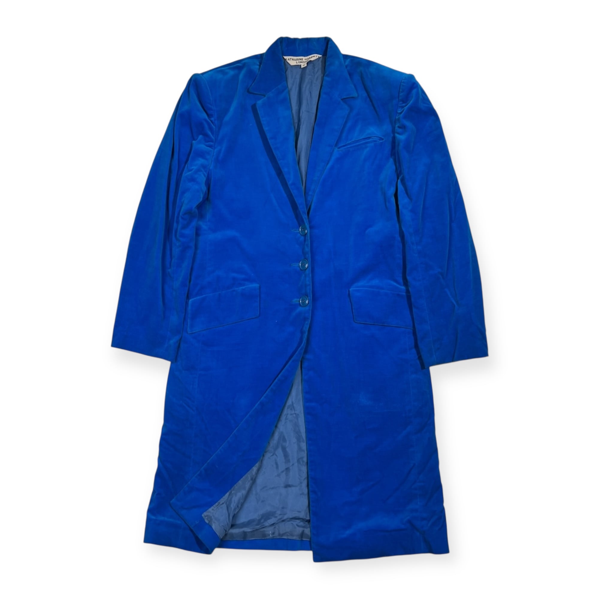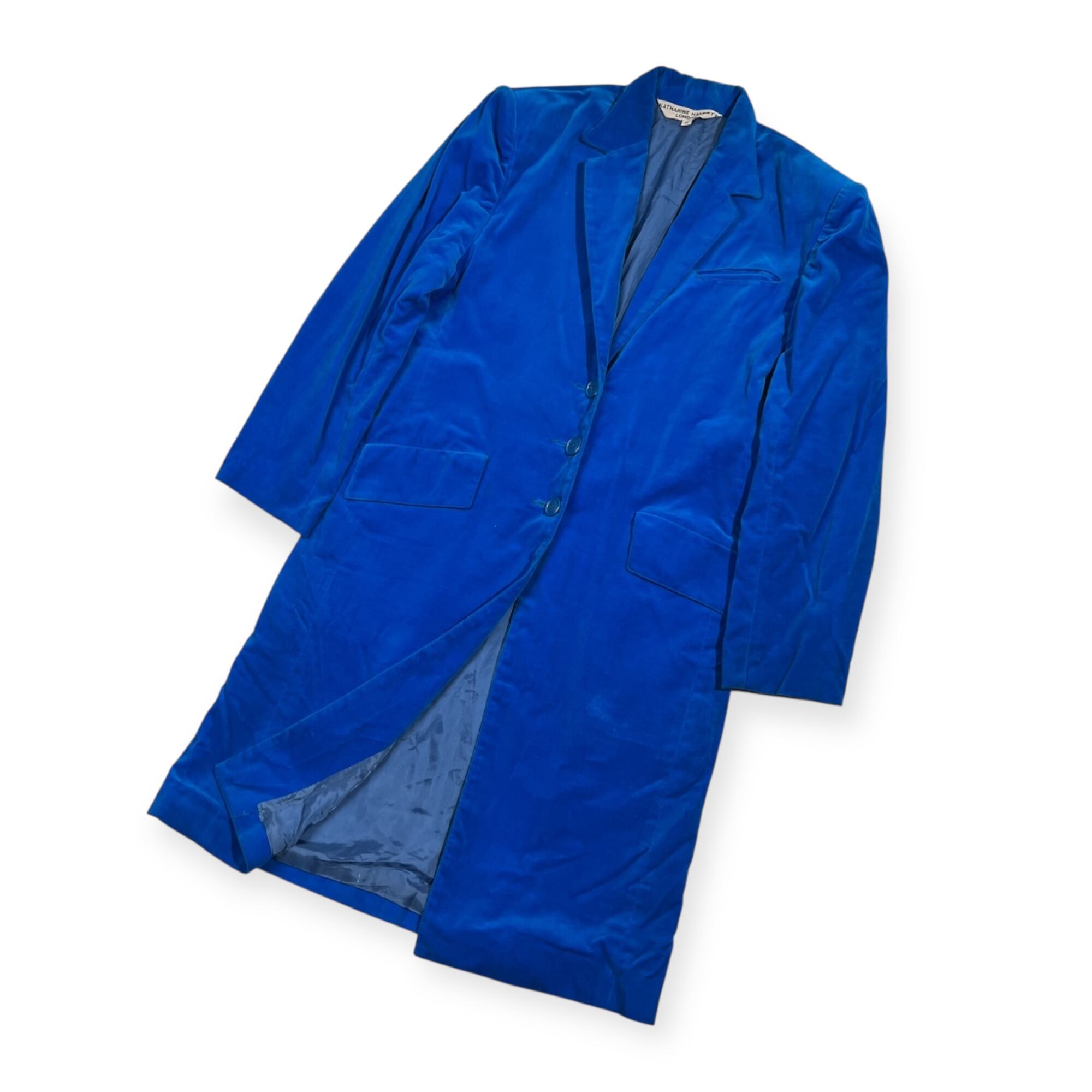 希少 レア 80s 90s KATHARINE HAMNETT キャサリンハムネット 初期 アーカイブ ビンテージ ベロア系 コート M /ブルー系/レディース