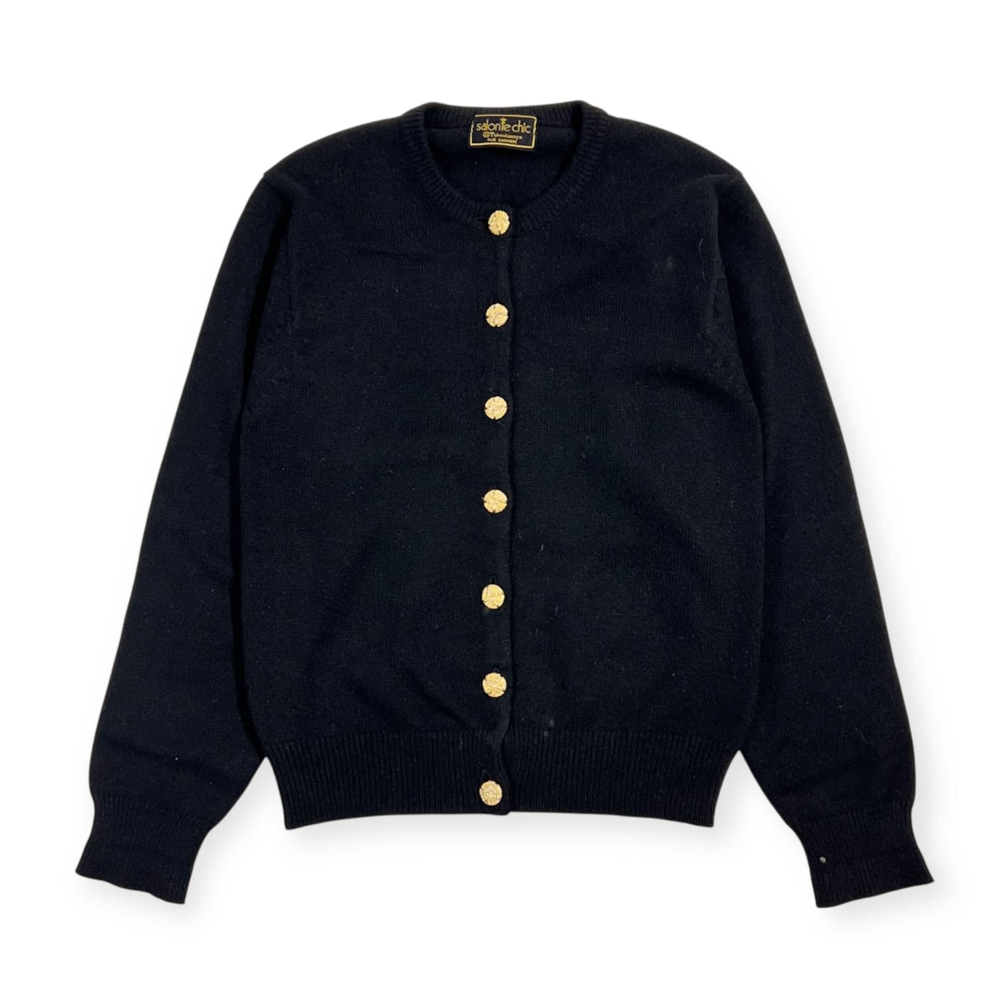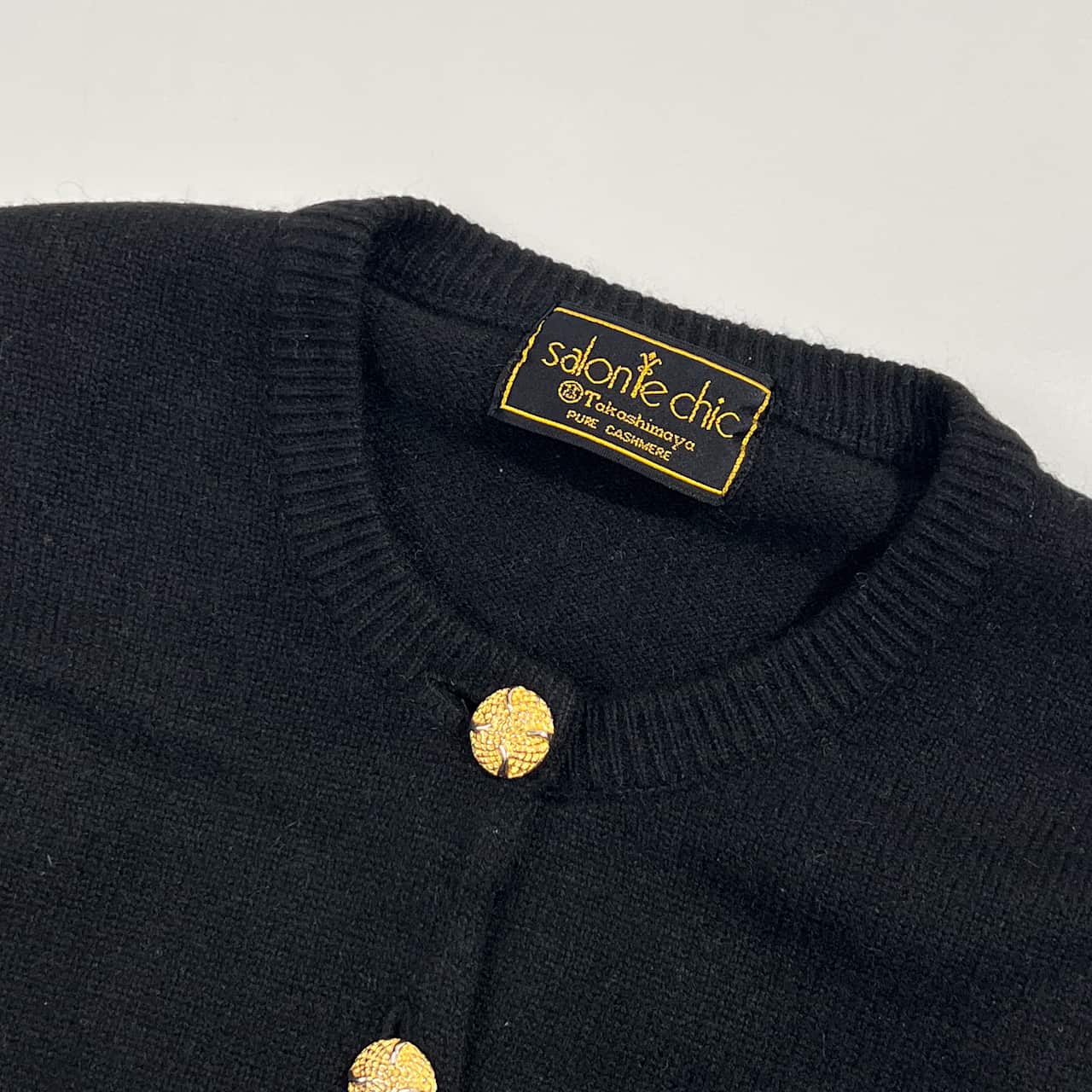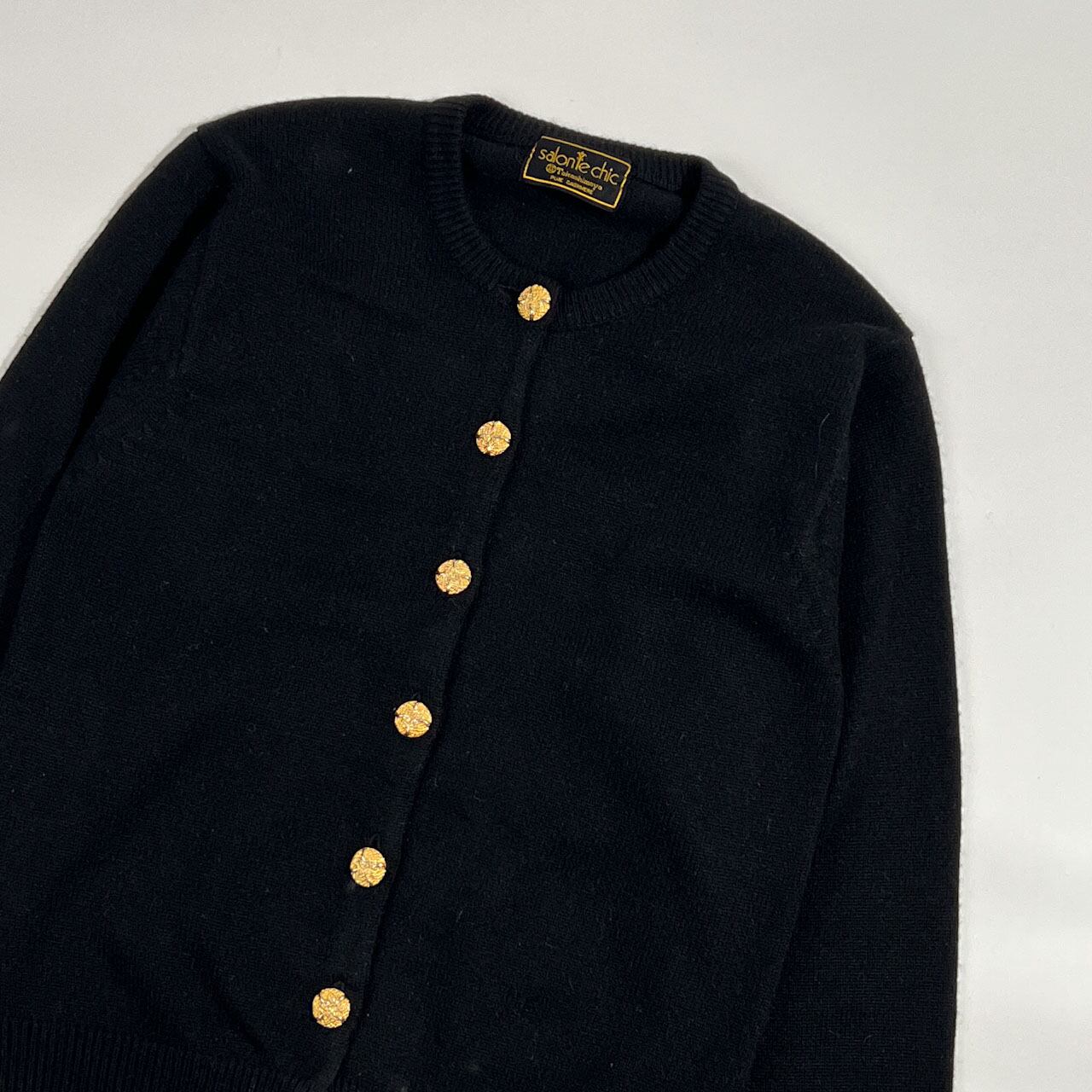 カシミヤ100% salonle chic サロンルシック 金ボタン ニット カーディガン 44/ブラック レディース