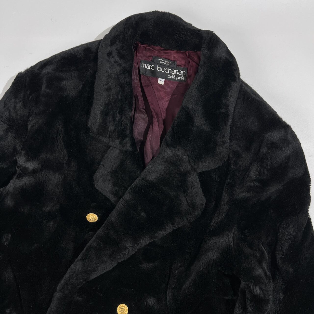 カナダ製 marc buchanan pelle pelle マークブキャナン ペレペレ 金ボタン ファー ダブル コート サイズ 40 /ブラック系/レディース/ビンテージ