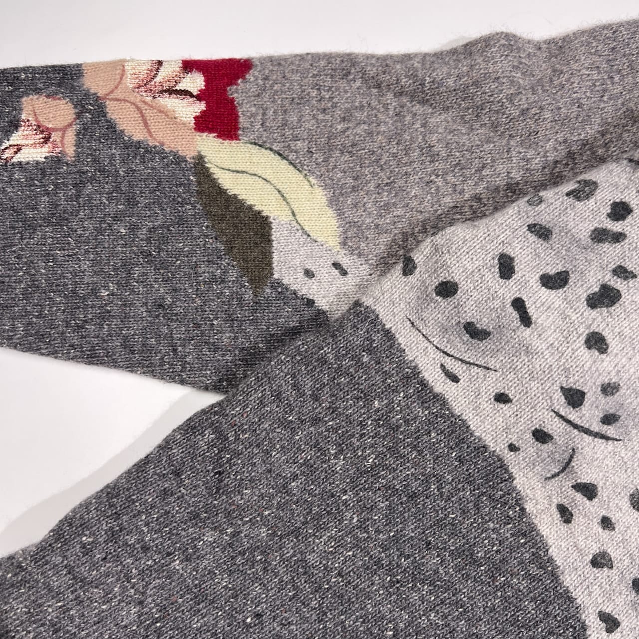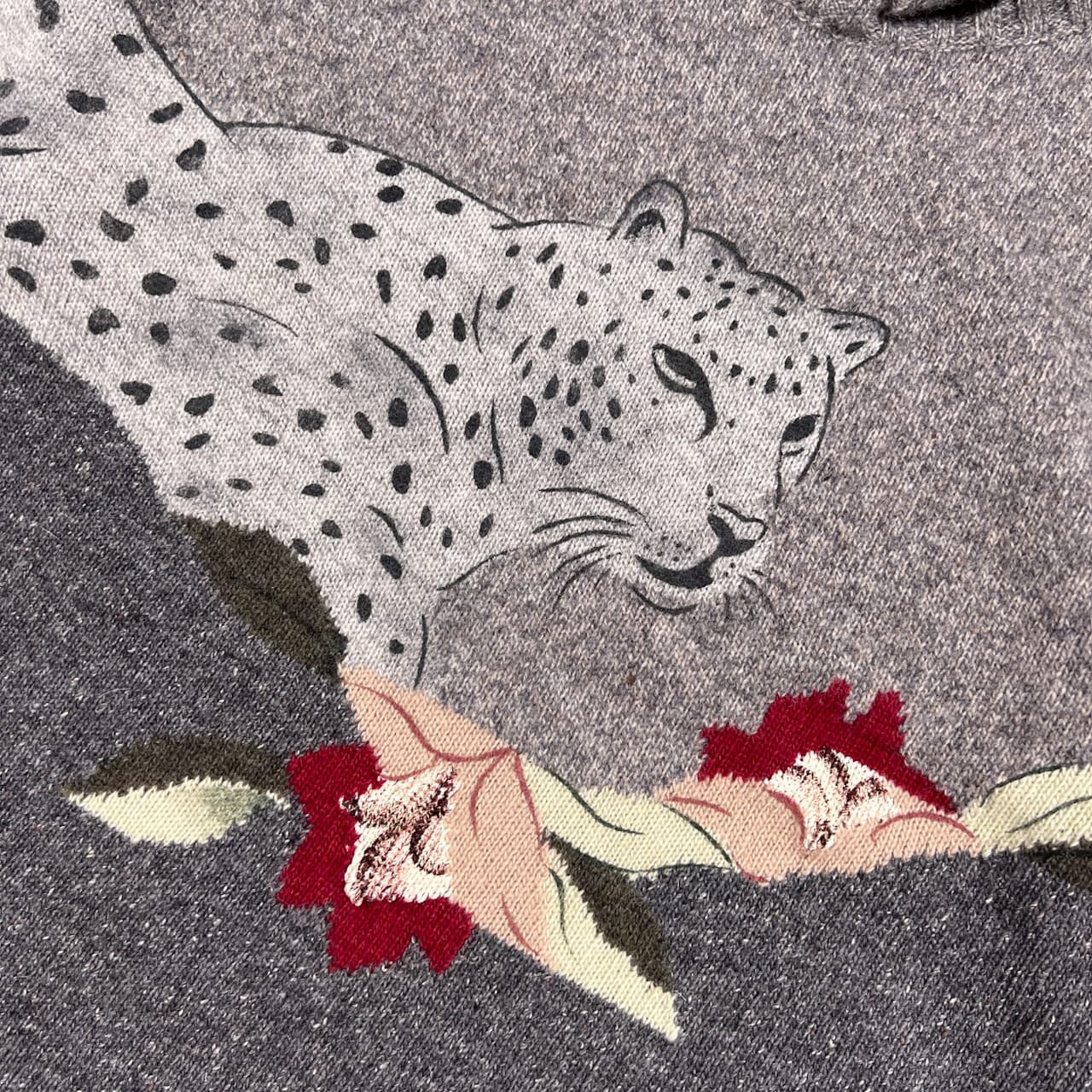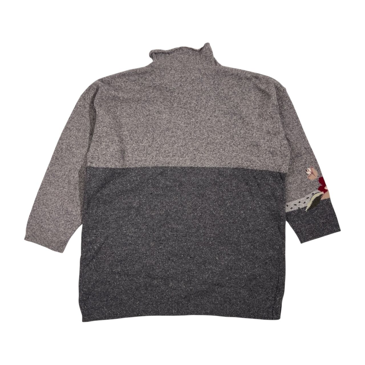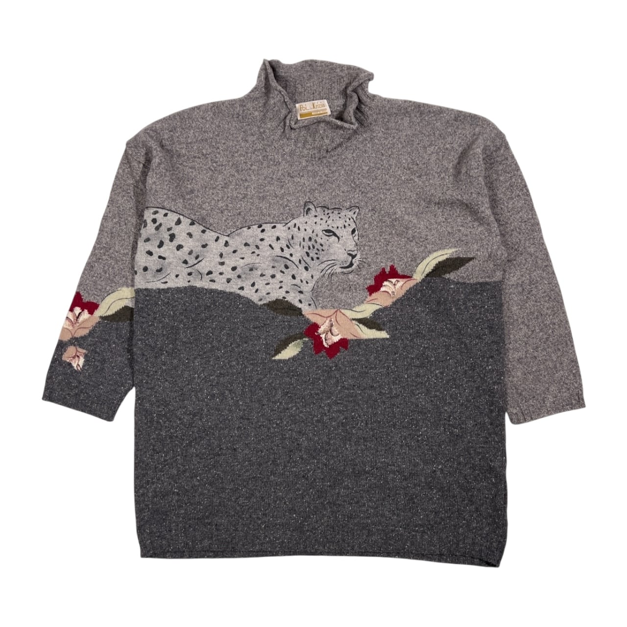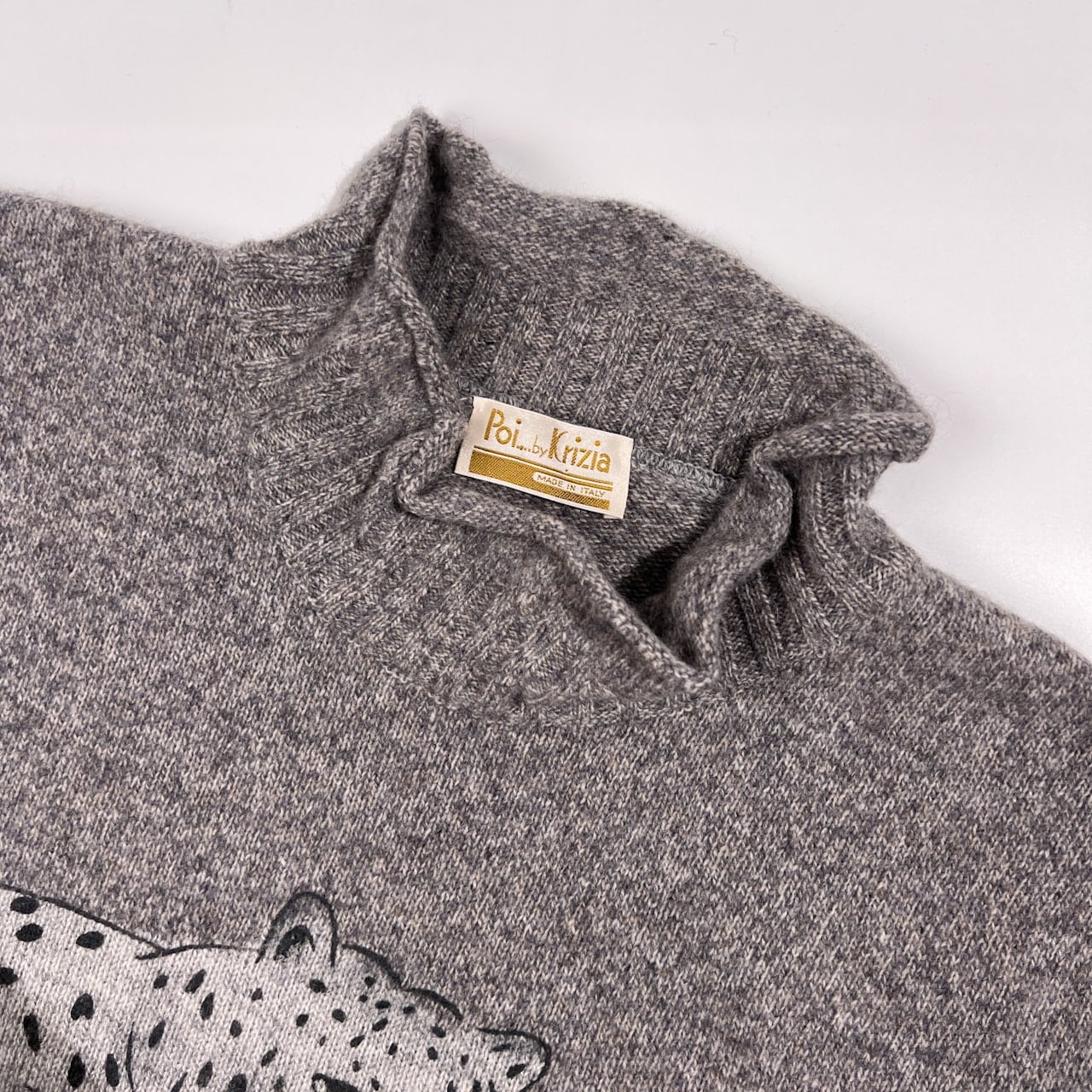 イタリア製 POi by KRIZIA ポイ バイ クリッツィア ヒョウ柄 レオパード ハイネック アンゴラ&シルク混 ウールニットセーター サイズ L /グレー/ビンテージ