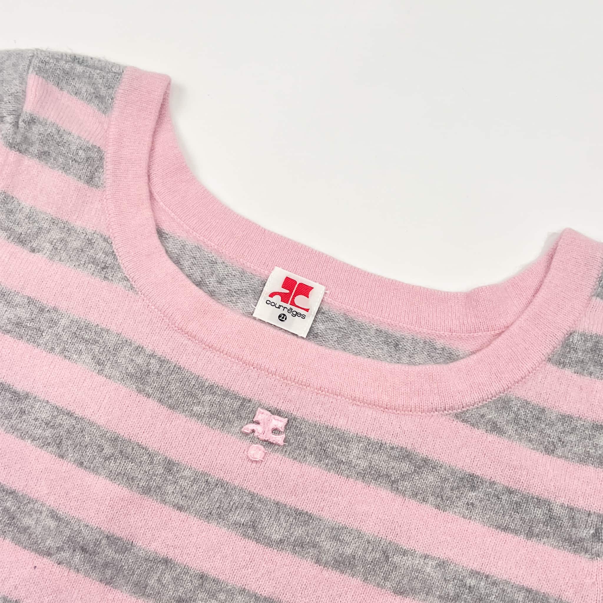 カシミヤ100% courrèges クレージュ ボーダー 半袖 ニット セーター 38/ピンク×グレー レディース