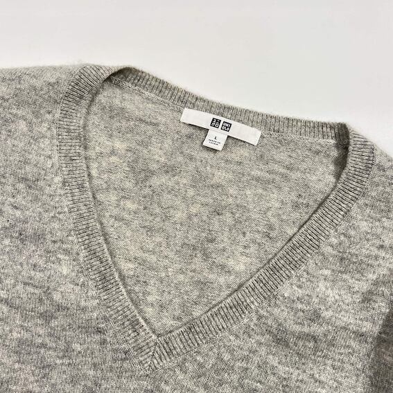 カシミヤ100% UNIQLO ユニクロ Vネック ニット セーター L/グレー レディース