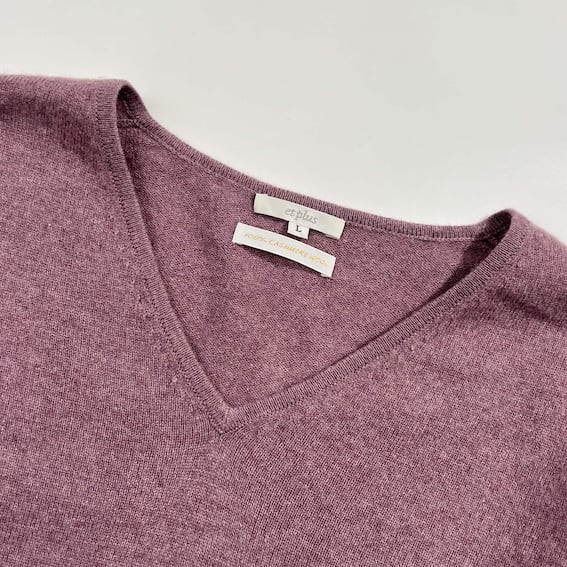 カシミヤ100% et plus エプリュ Vネック ニット セーター L/パープル系 レディース