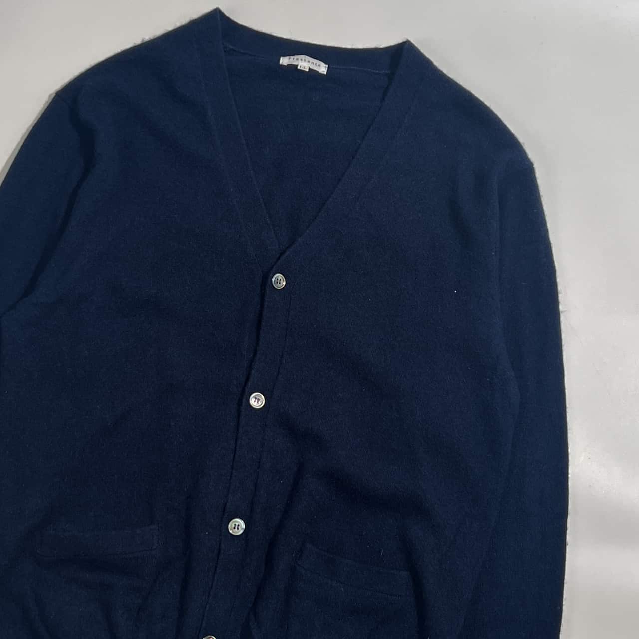 カシミヤ100% Prestante プレスタンテ Vネック ニット カーディガン LL/ネイビー メンズ