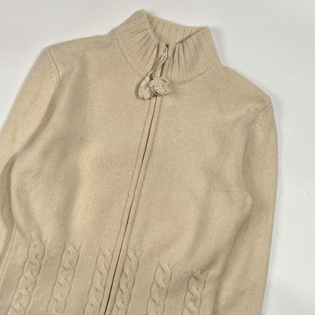 カシミヤ100% THENEWS ザニュース ダブルジップ ニット ジャケット M/アイボリー レディース