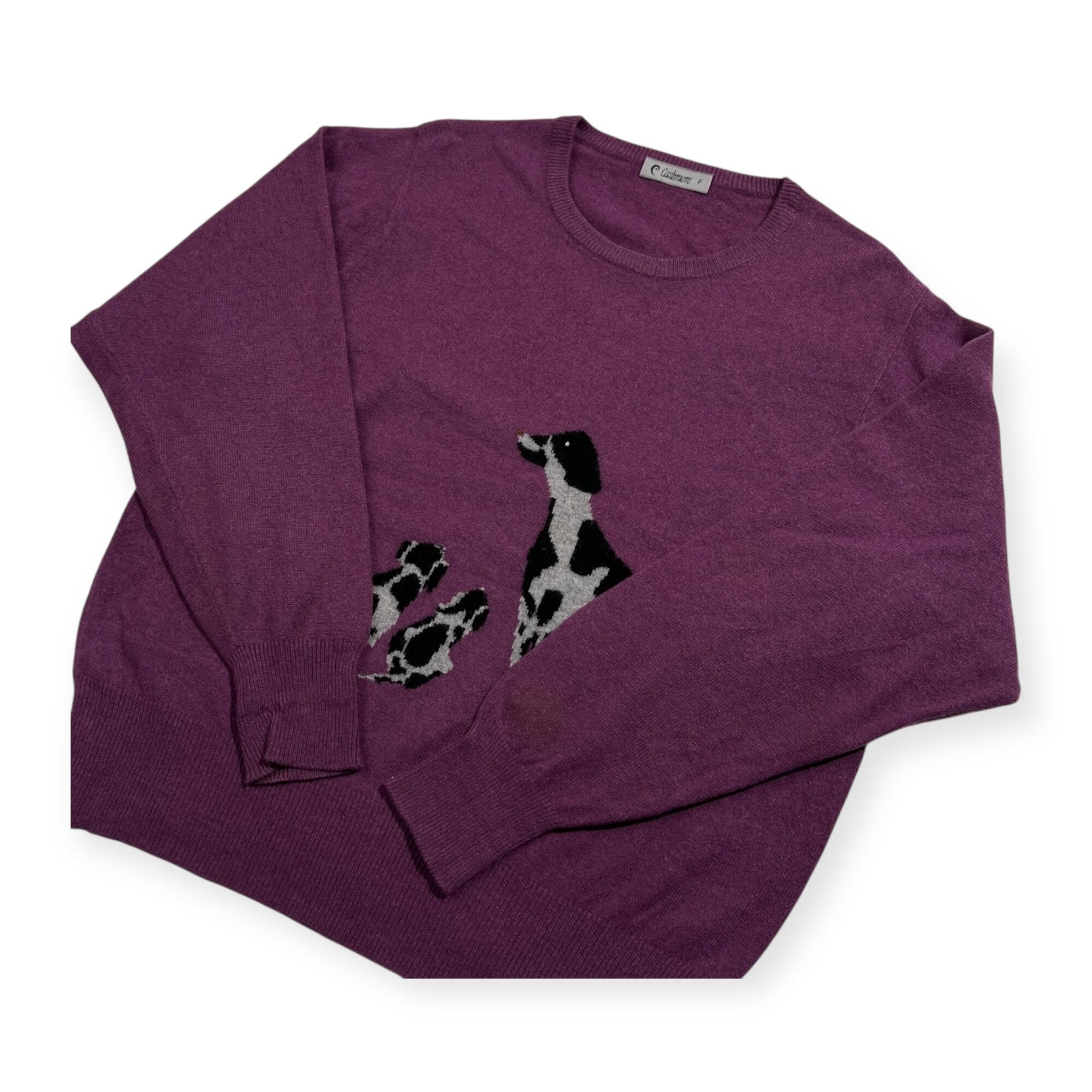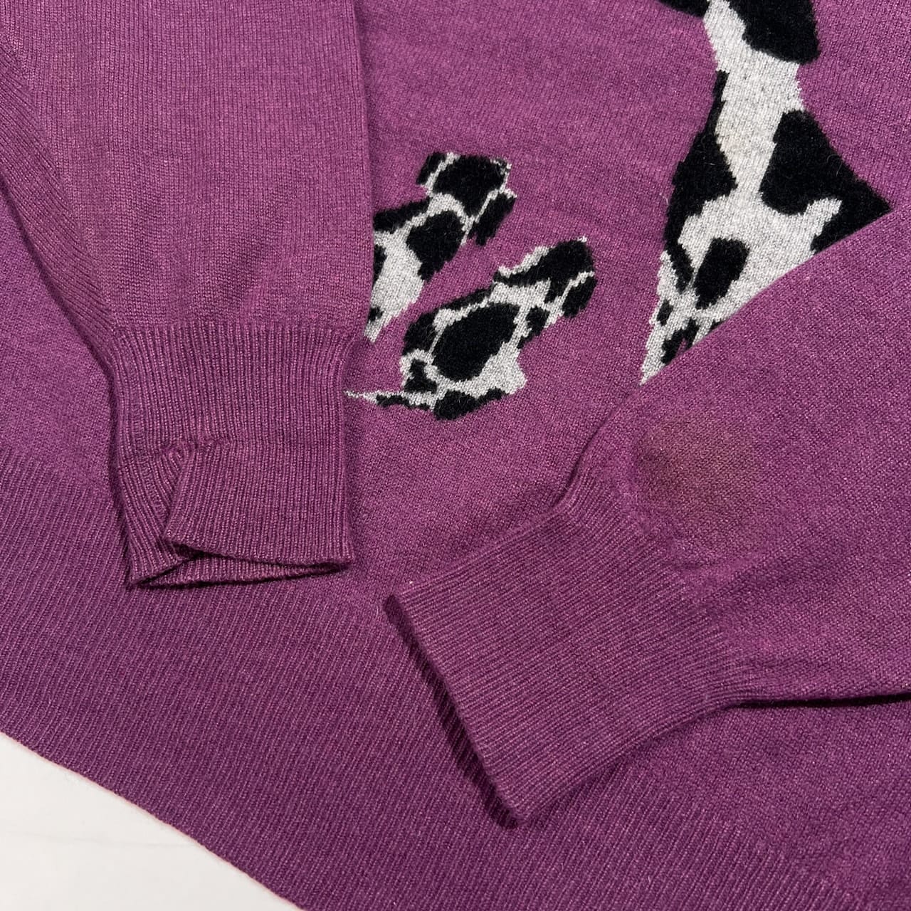 カシミヤ100% Cashmere ドック 犬柄 カシミア ウールニットセーター サイズ F /フリーサイズ/パープル/レディース