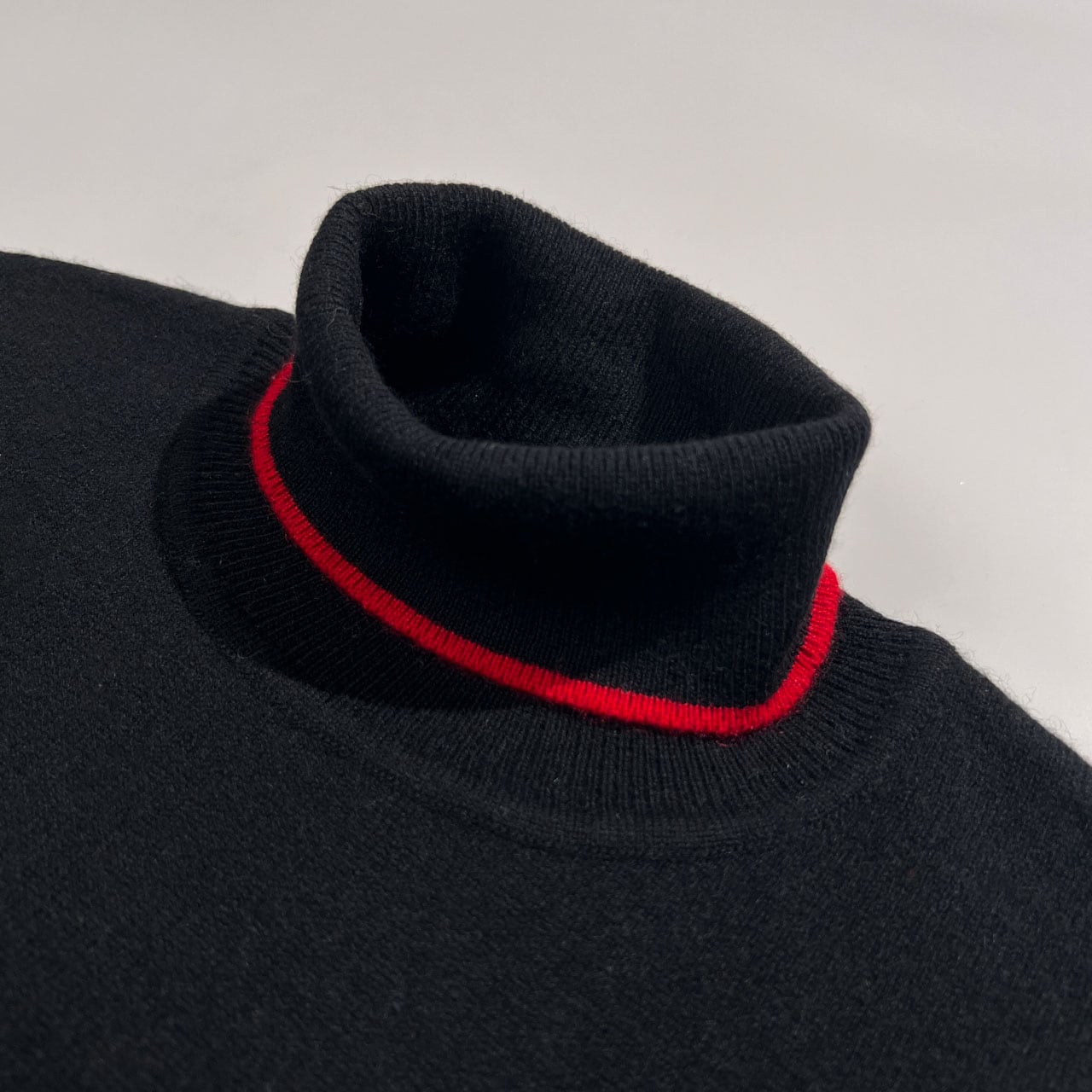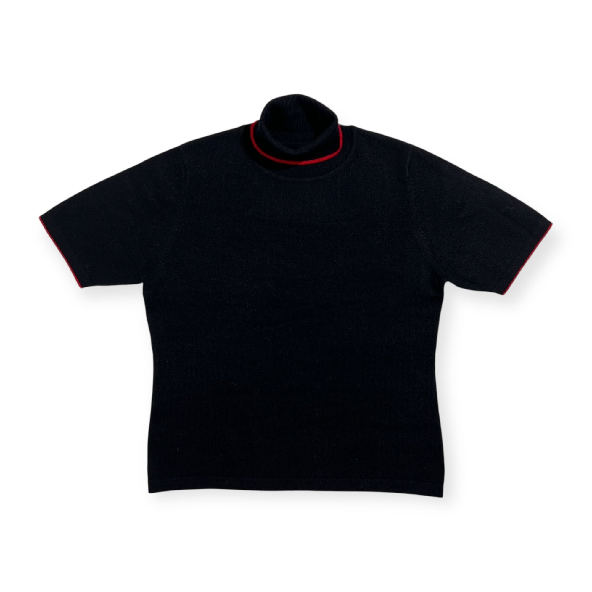 カシミヤ100% One Branch デザイン タートルネック 半袖 カシミア ウールニットセーター ハイゲージ ブラック×レッド/レディース