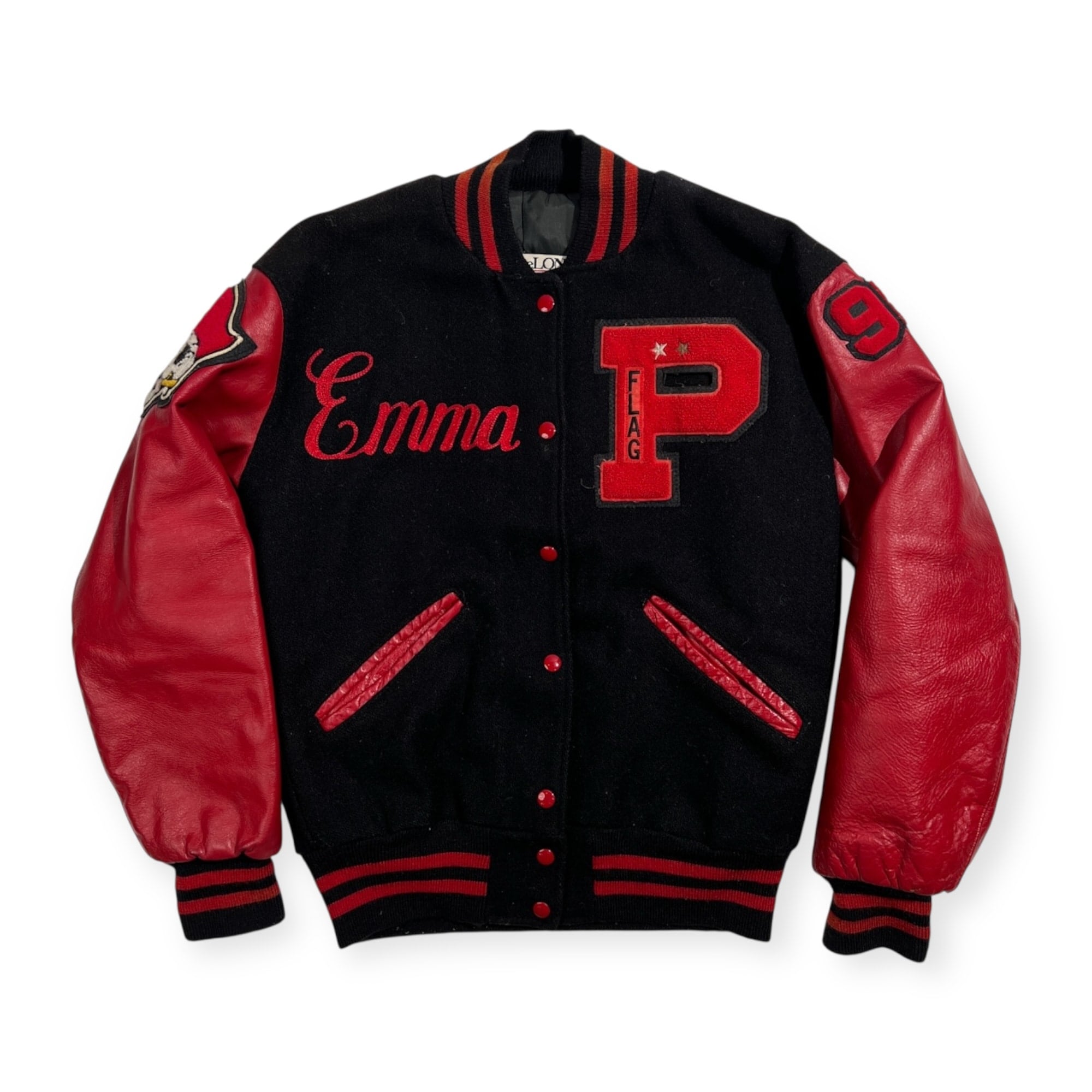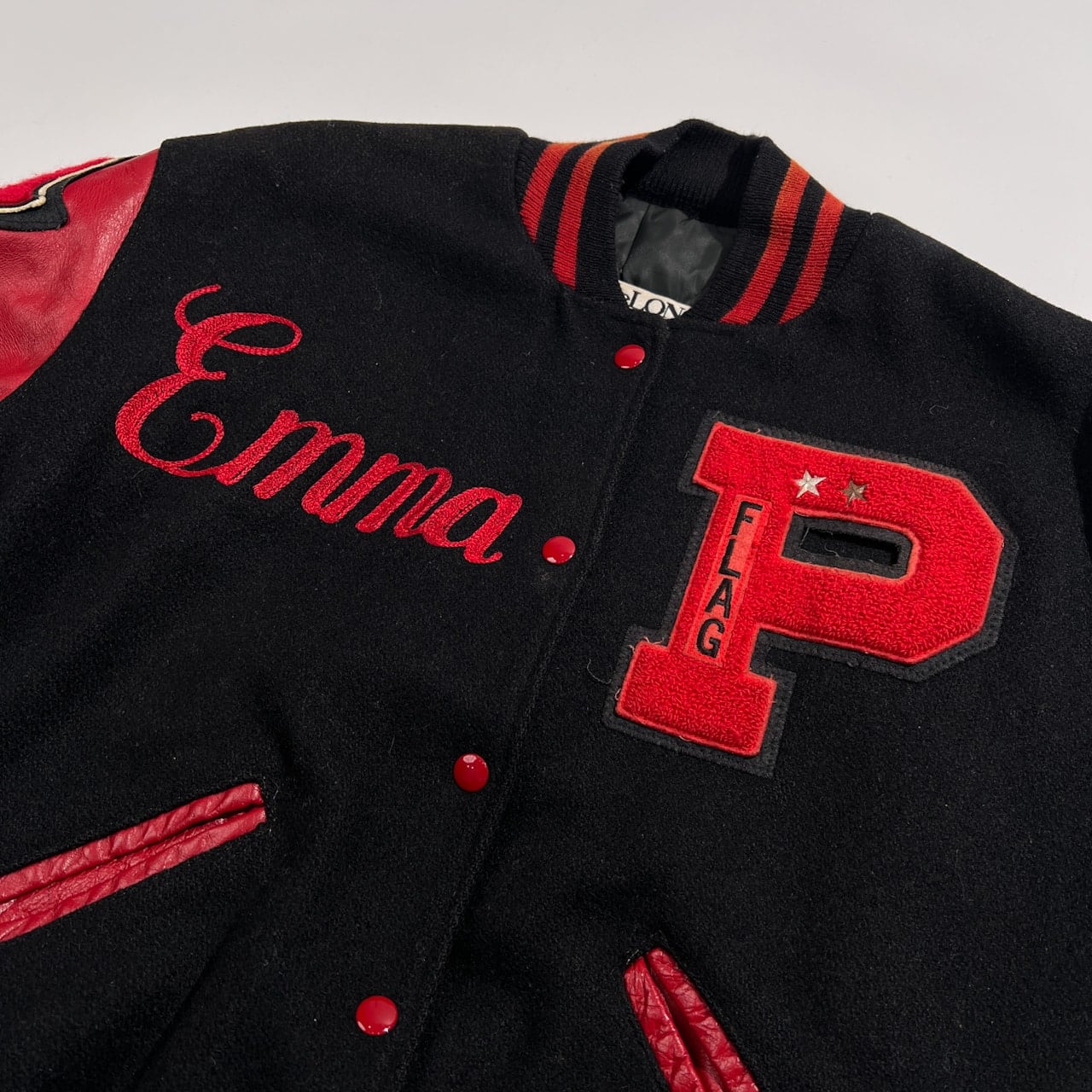 USA製 DeLONG フルデコ 刺繍 ワッペン 袖革 本革 レザー スタジャン サイズ S /メンズ/ビンテージ/アメリカ製/ブラック×レッド
