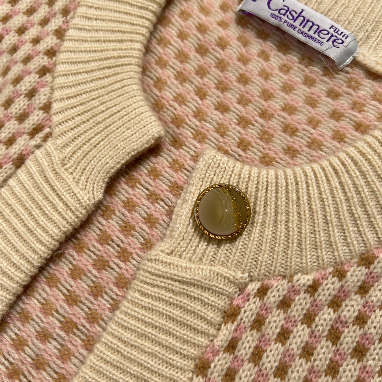 カシミヤ100% FUJII Cashmere フジイ カシミア 総柄 ニット 羽織り カーディガン FREE フリーサイズ /レディース