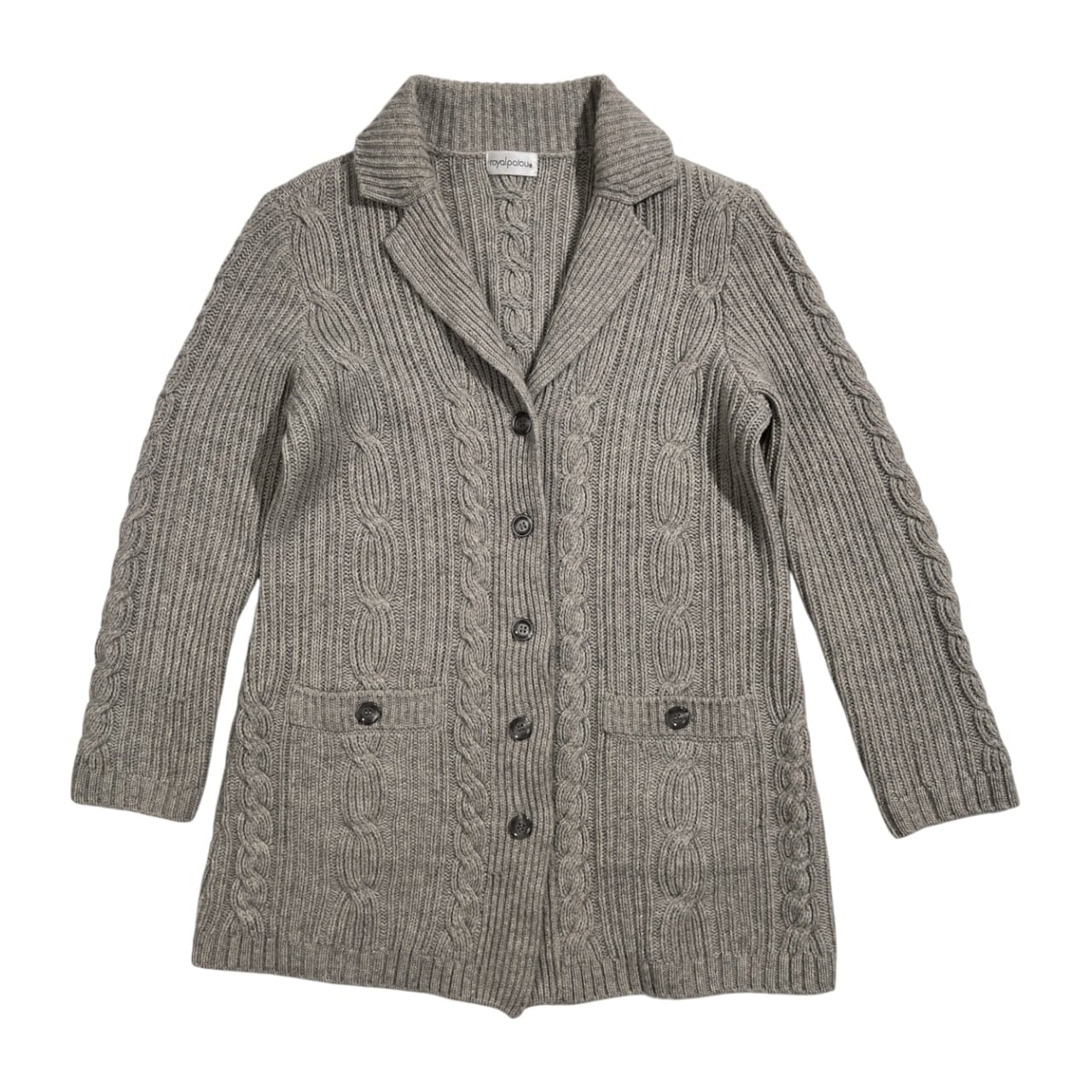 カシミヤ100% ROYAL PATOU ロイヤルパトゥ ケーブル編み ローゲージ カシミア ニット カーディガン /レディース/グレー系