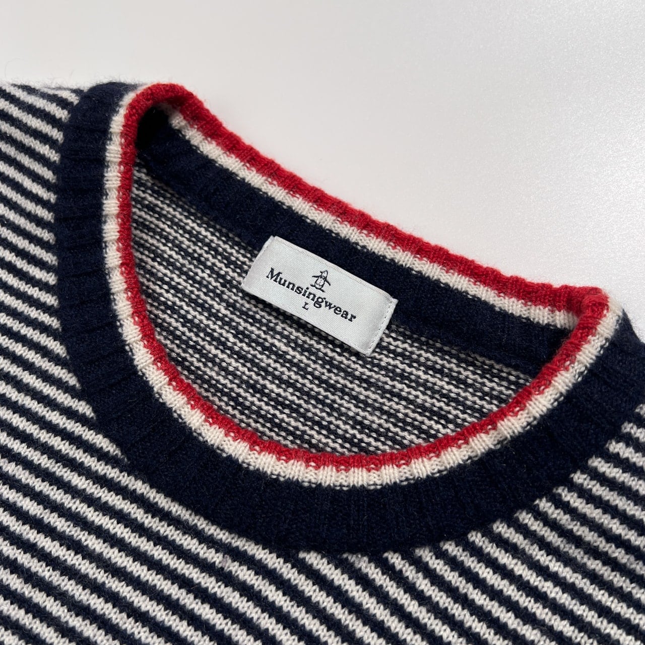 カシミヤ80%入り Munsingwear マンシングウェア ボーダー柄 カシミア ウールニットセーター サイズ L /レディース/ゴルフ/日本製