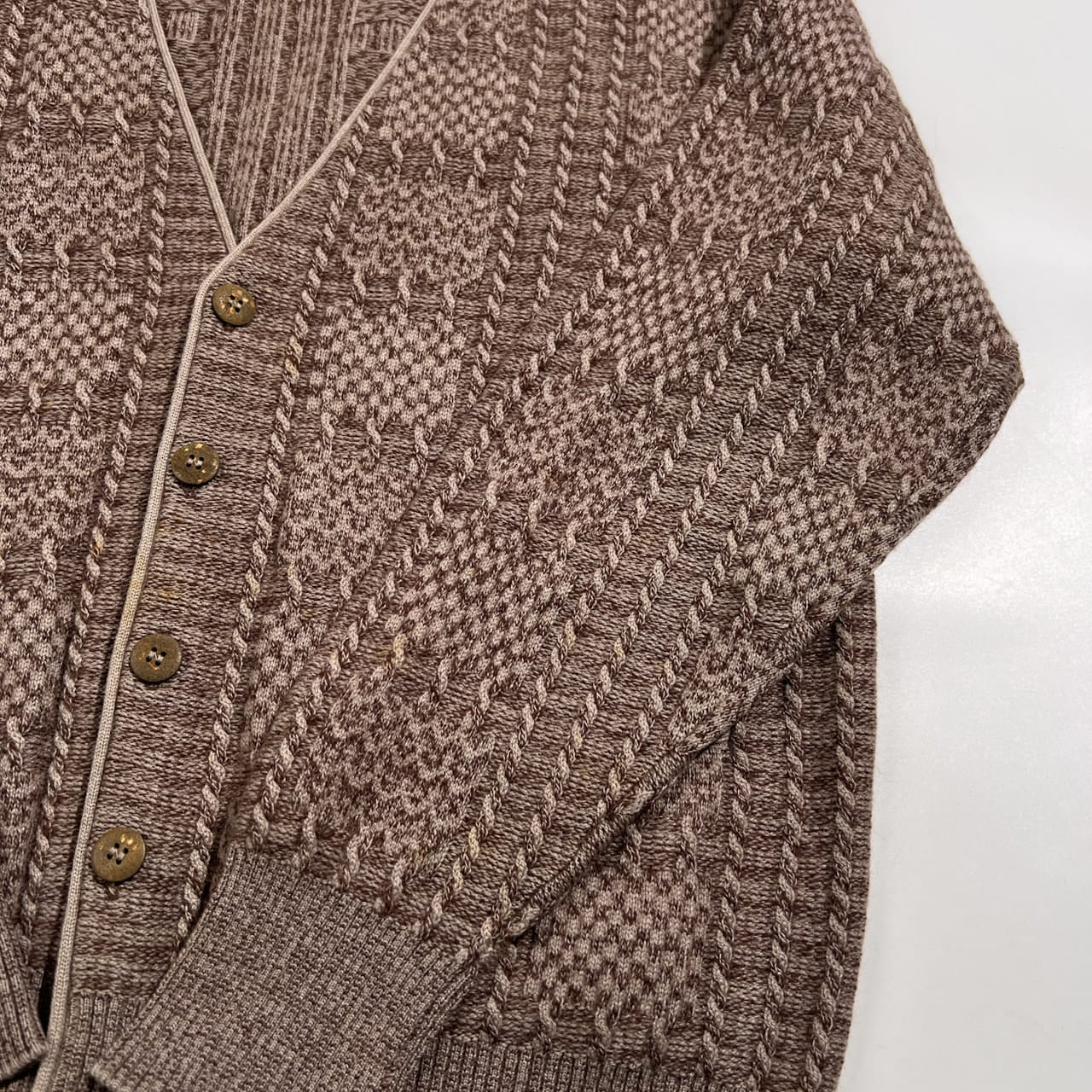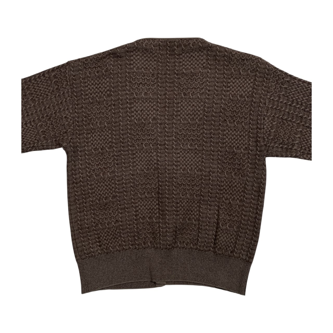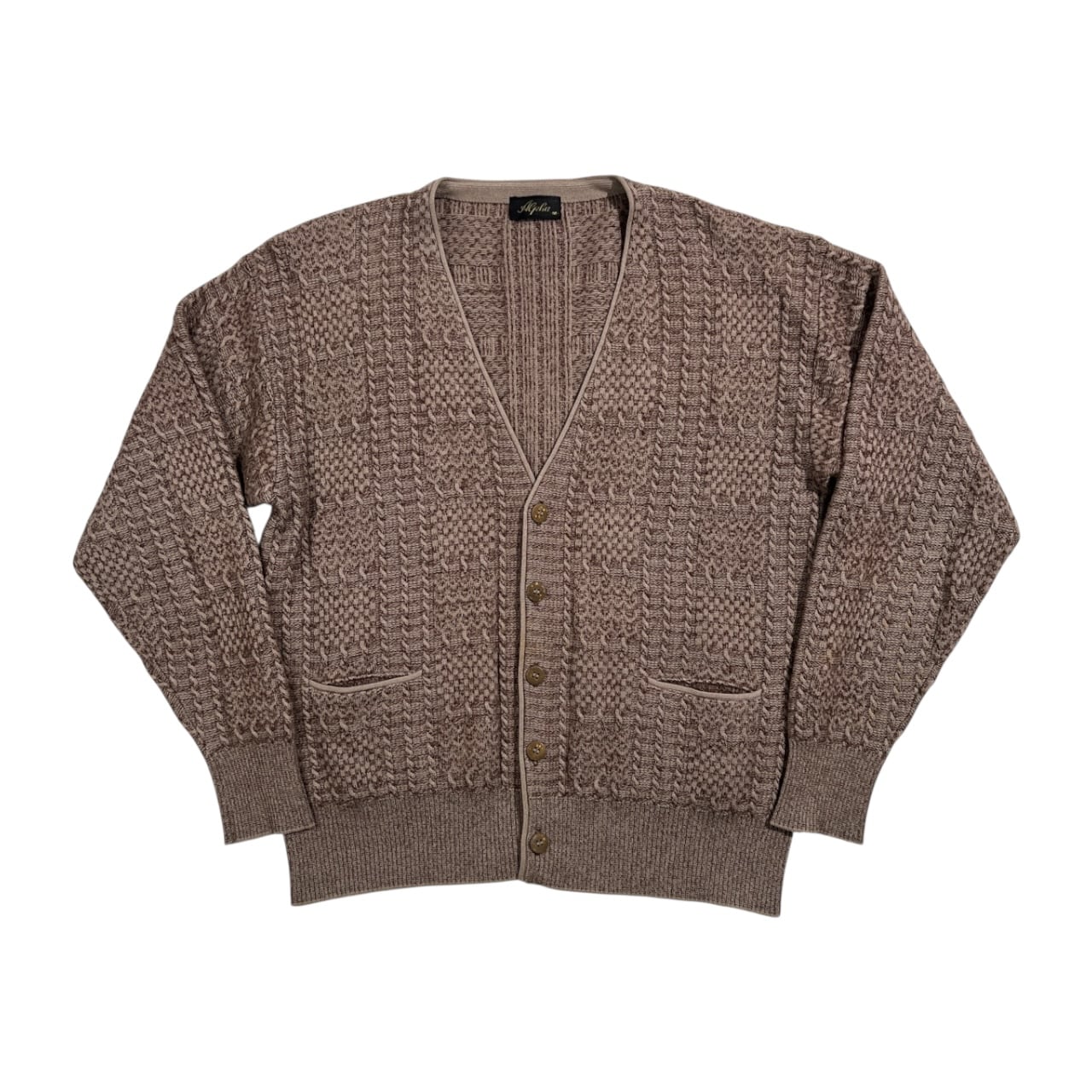 カシミヤ Alpha アルファ デザイン編み ウールニット カーディガン サイズ M /ブラウン×ベージュ/メンズ