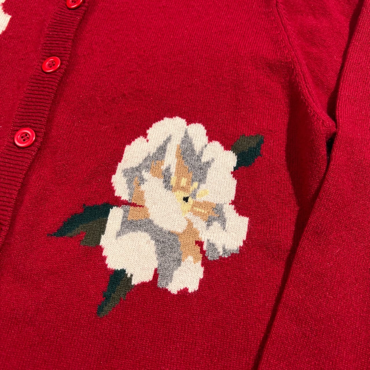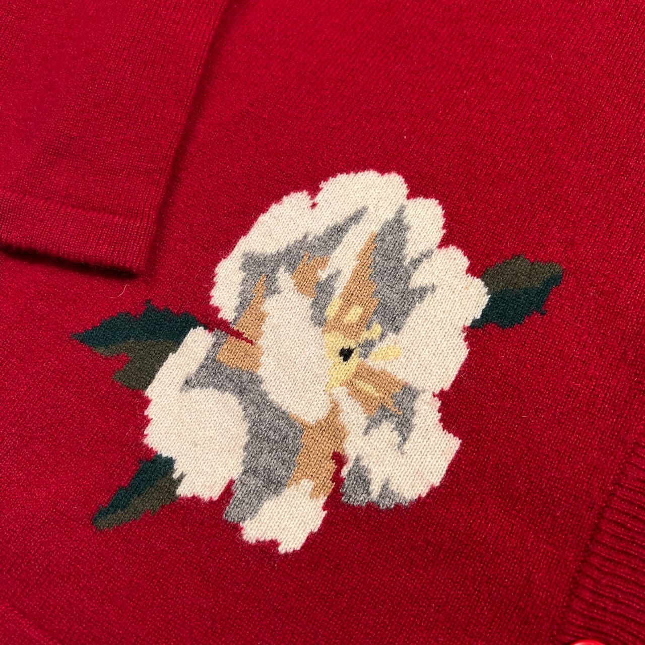 カシミヤ100% gtasa 花柄 デザイン 前ボタン カシミア ウールニット カーディガン /レディース/レッド