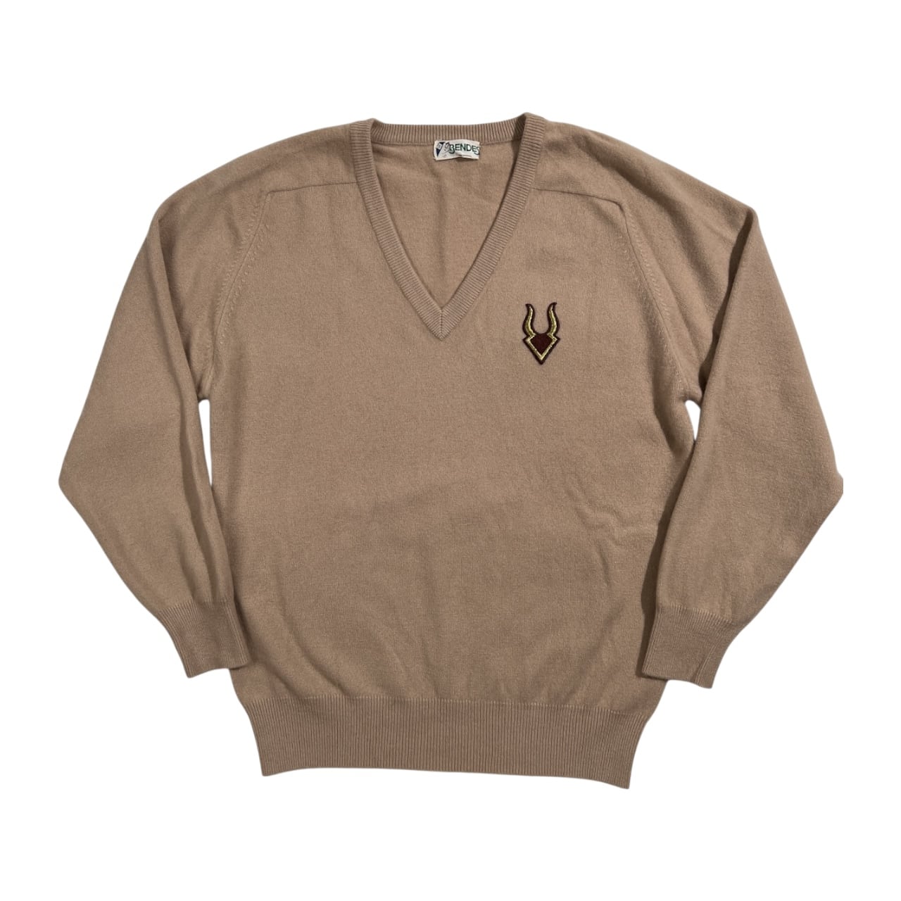 カシミヤ100% BENDES ワッペン付き Vネック カシミア ウールニットセーター サイズ M /ベージュ系/男女でも