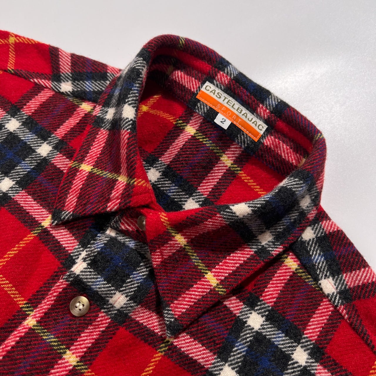 CASTELBAJAC カステルバジャック チェック柄 カシミヤ混 長袖 ウール シャツ サイズ 2 /メンズ/レッド