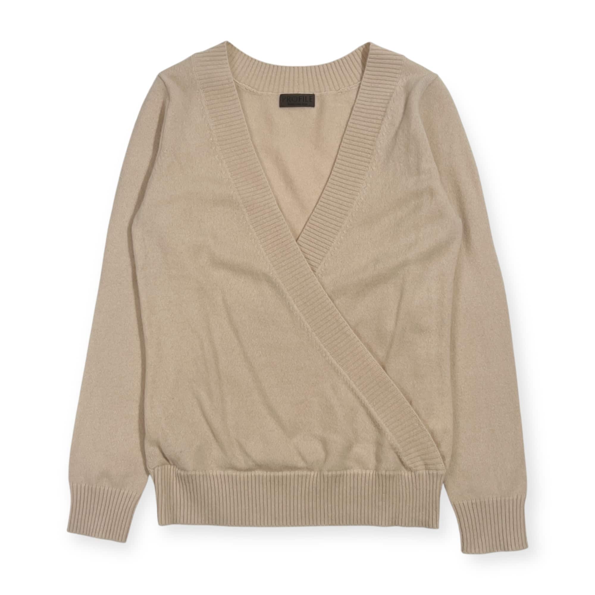 カシミヤ100% PROFILE プロフィール Vネック ラップ ニット セーター 38/アイボリー系 レディース