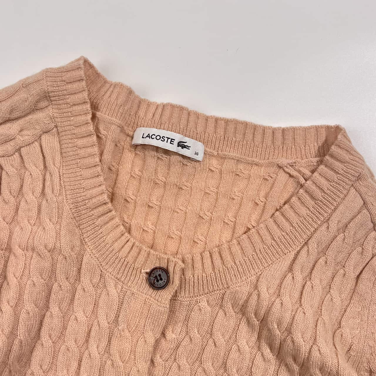カシミヤ混 LACOSTE ラコステ ケーブル編み ニット カーディガン 36/ピンク系 レディース