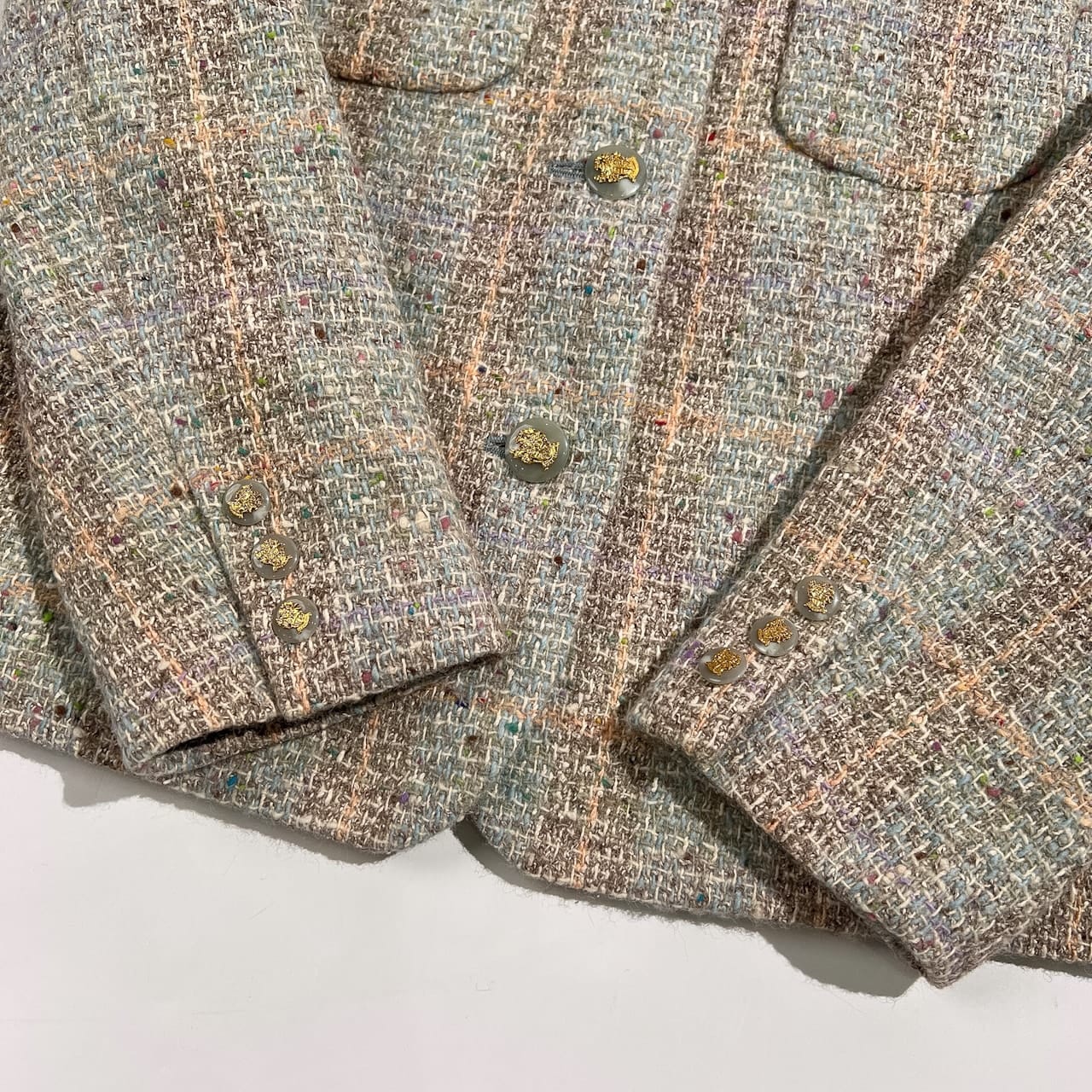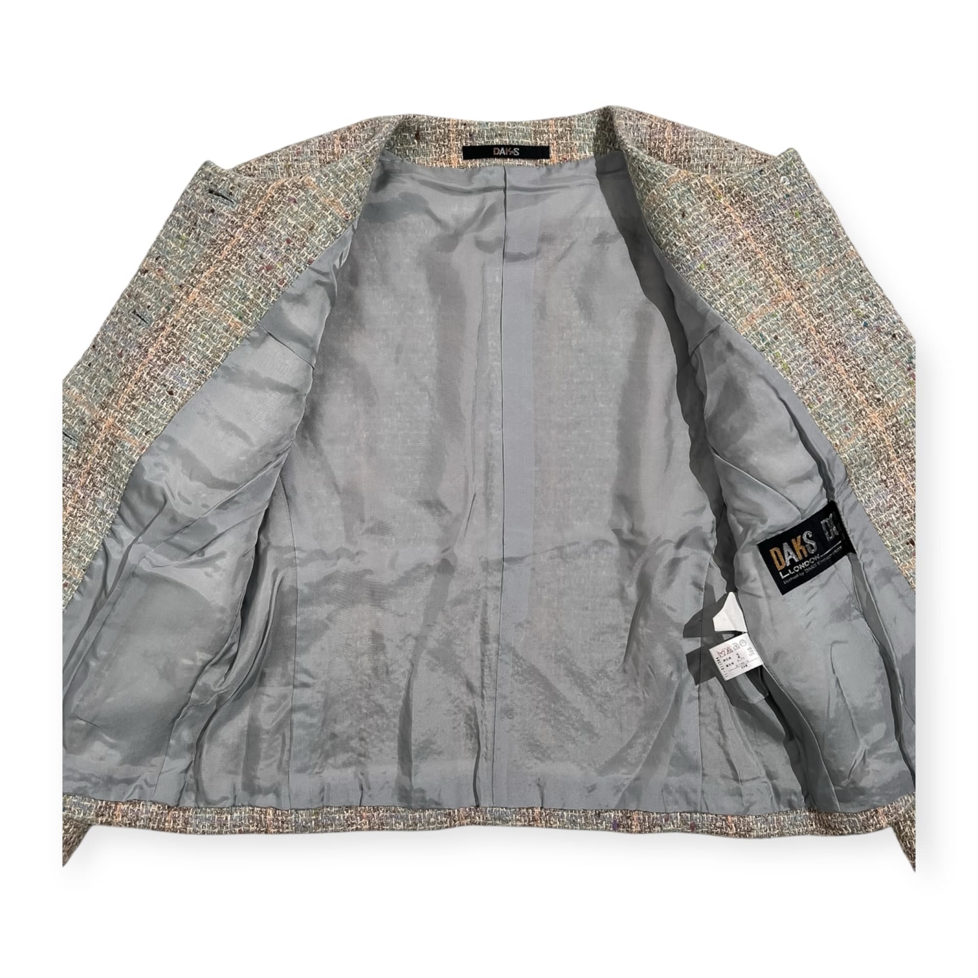 DAKS ダックス 金ボタン 高級 シルク混 ツイード ウール ジャケット サイズ 11AR /レディース/日本製/マルチ