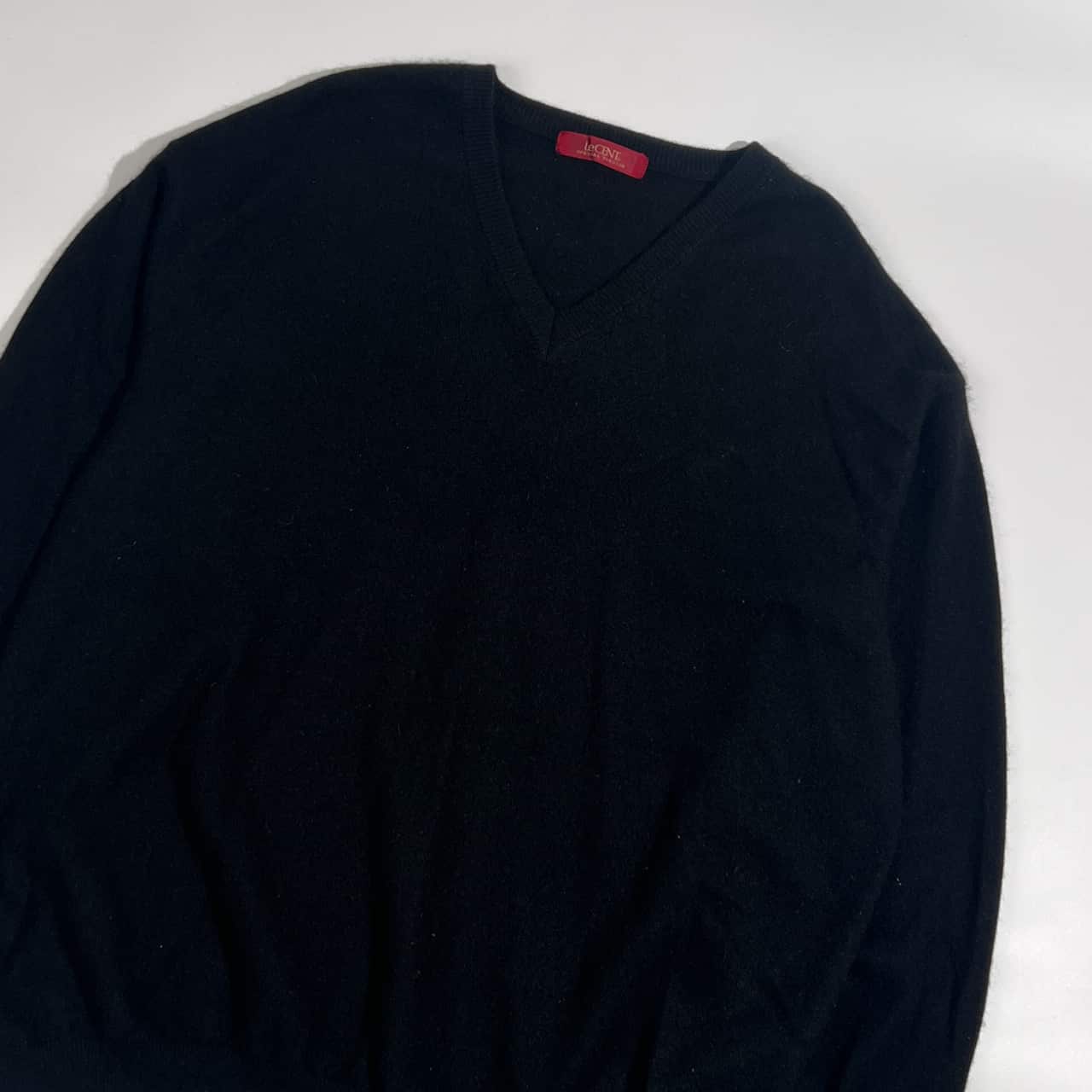 カシミヤ100% Le CENT レセント Vネック ニット セーター 3L/ブラック メンズ