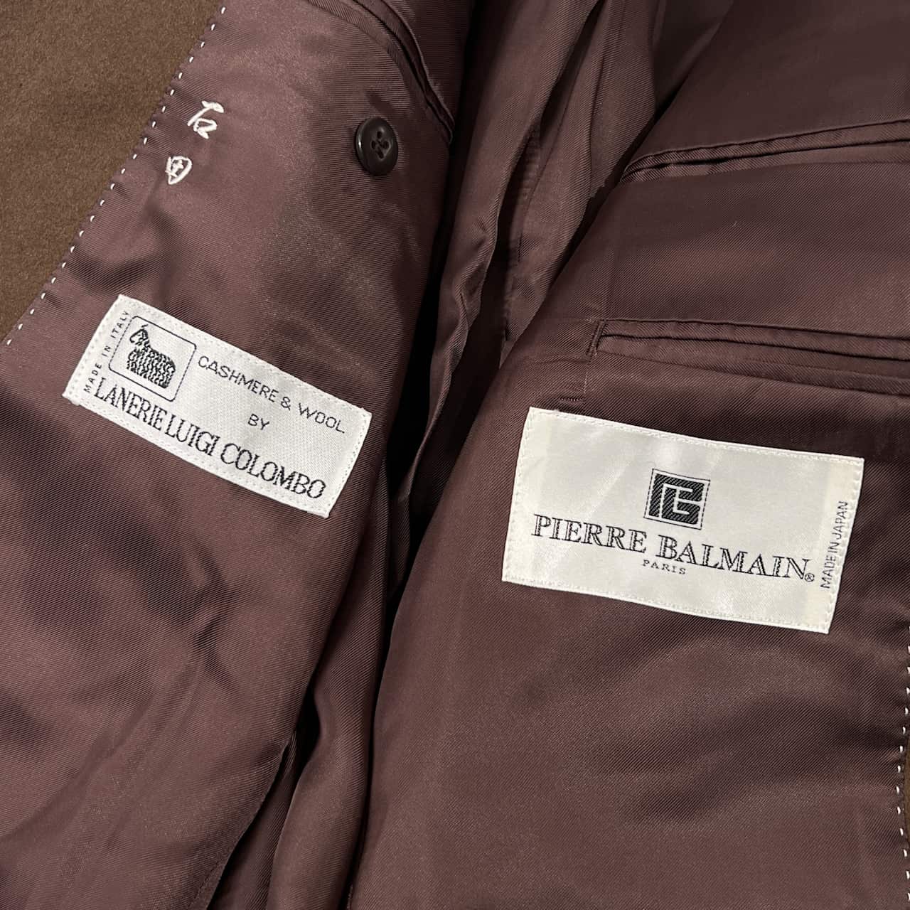 カシミヤ混 PIERRE BALMAIN ピエール・バルマン LANERIE LUIGI COLOMBO テーラードジャケット 94-84-165/ダークベージュ系 メンズ