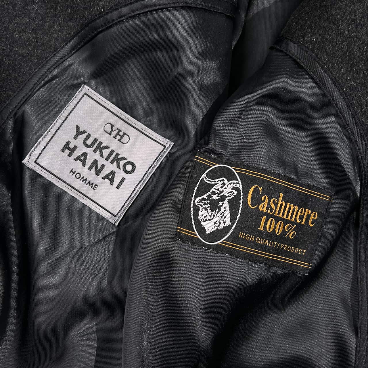 カシミヤ100% YUKIKO HANAI HOMME ユキコハナイ 比翼 ステンカラーコート 90-78-165/ダークグレー メンズ