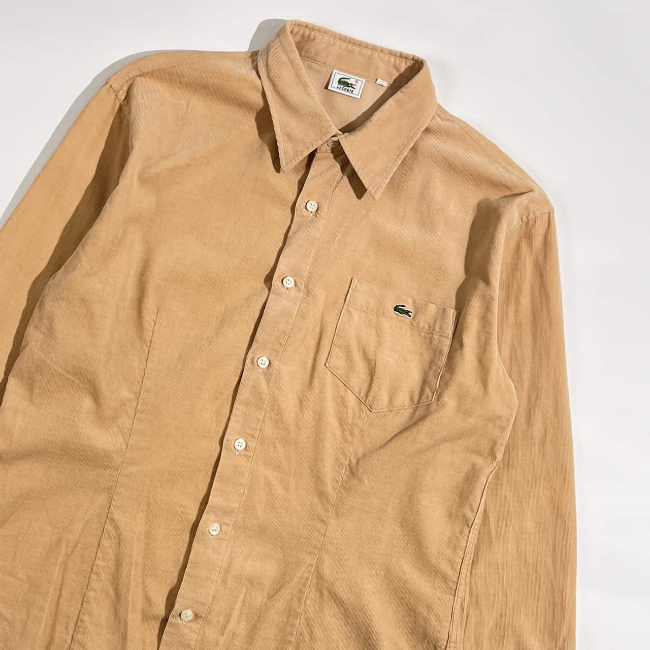 90s LACOSTE ラコステ コーデュロイ 長袖シャツ 42/ベージュ メンズ ビンテージ