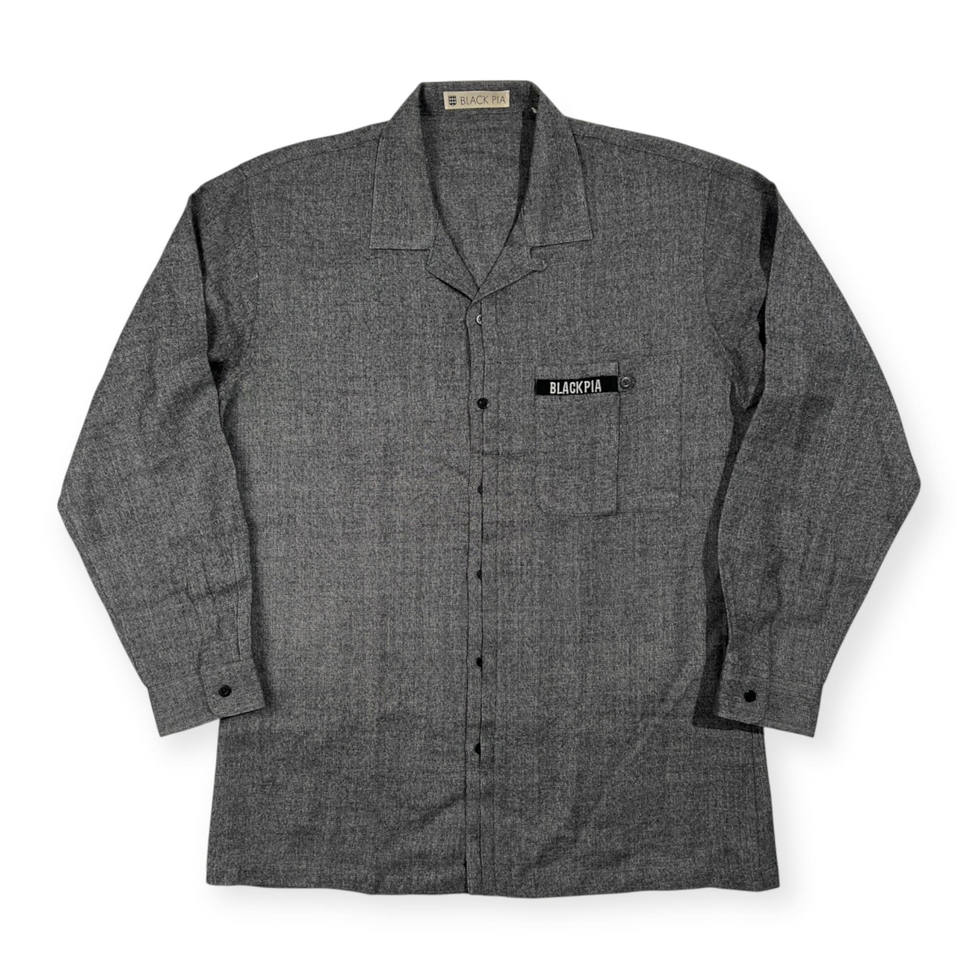 BLACK PIA ブラックピア ロゴ刺繍 長袖 ウール シャツ サイズ L /メンズ/グレー/日本製/ライカ