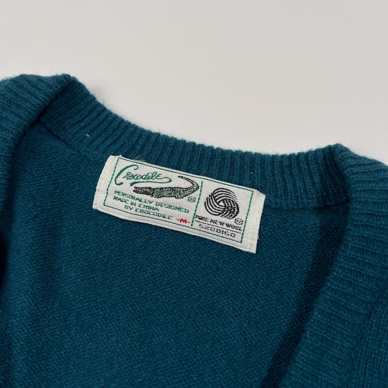 タグ付き 未使用品 Crocodile クロコダイル Vネック ウールニットセーター サイズ M /ケーブル編み/ブルー系