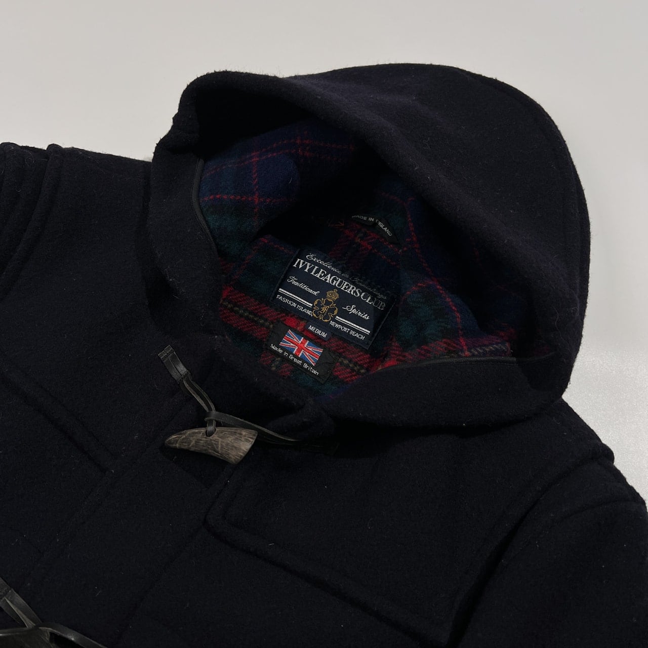 イングランド製 IVY LEAGUERS CLUB アイビーリガーズクラブ 裏チェック メルトン ウール ダッフルコート サイズ M /ネイビー/ビンテージ