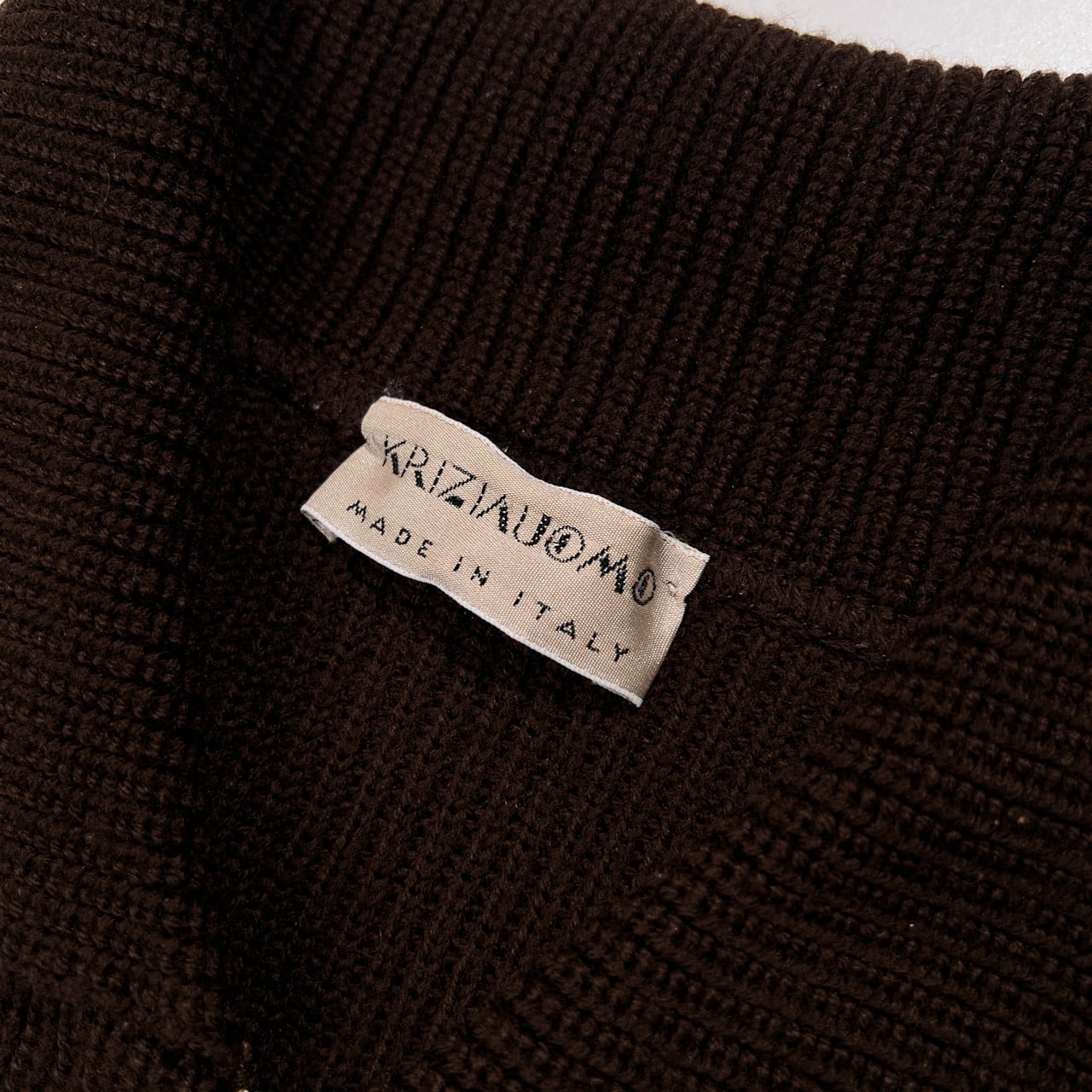 90s イタリア製 KRIZIA UOMO クリツィア ウォモ ジップアップ リブ ウールニット ジャケット カーディガン サイズ L /メンズ/ブラウン/ビンテージ