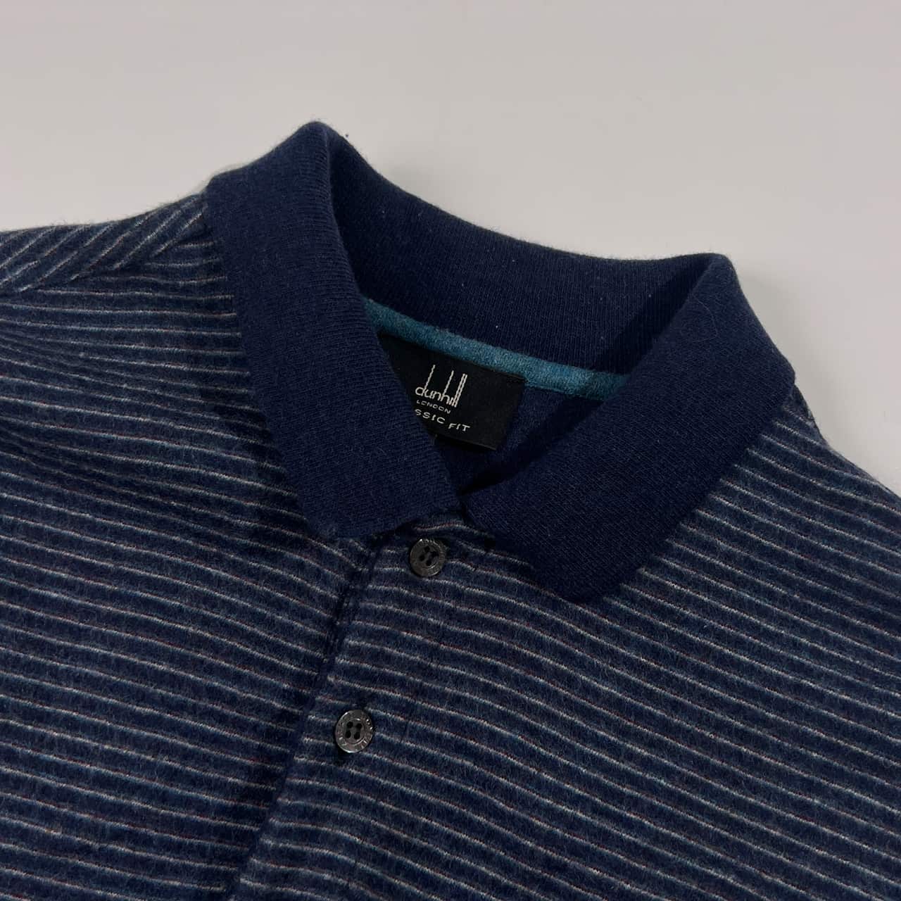 dunhill ダンヒル CLASSIC FIT ボーダー ウール ポロニット シャツ XS/ネイビー ブルー系 メンズ