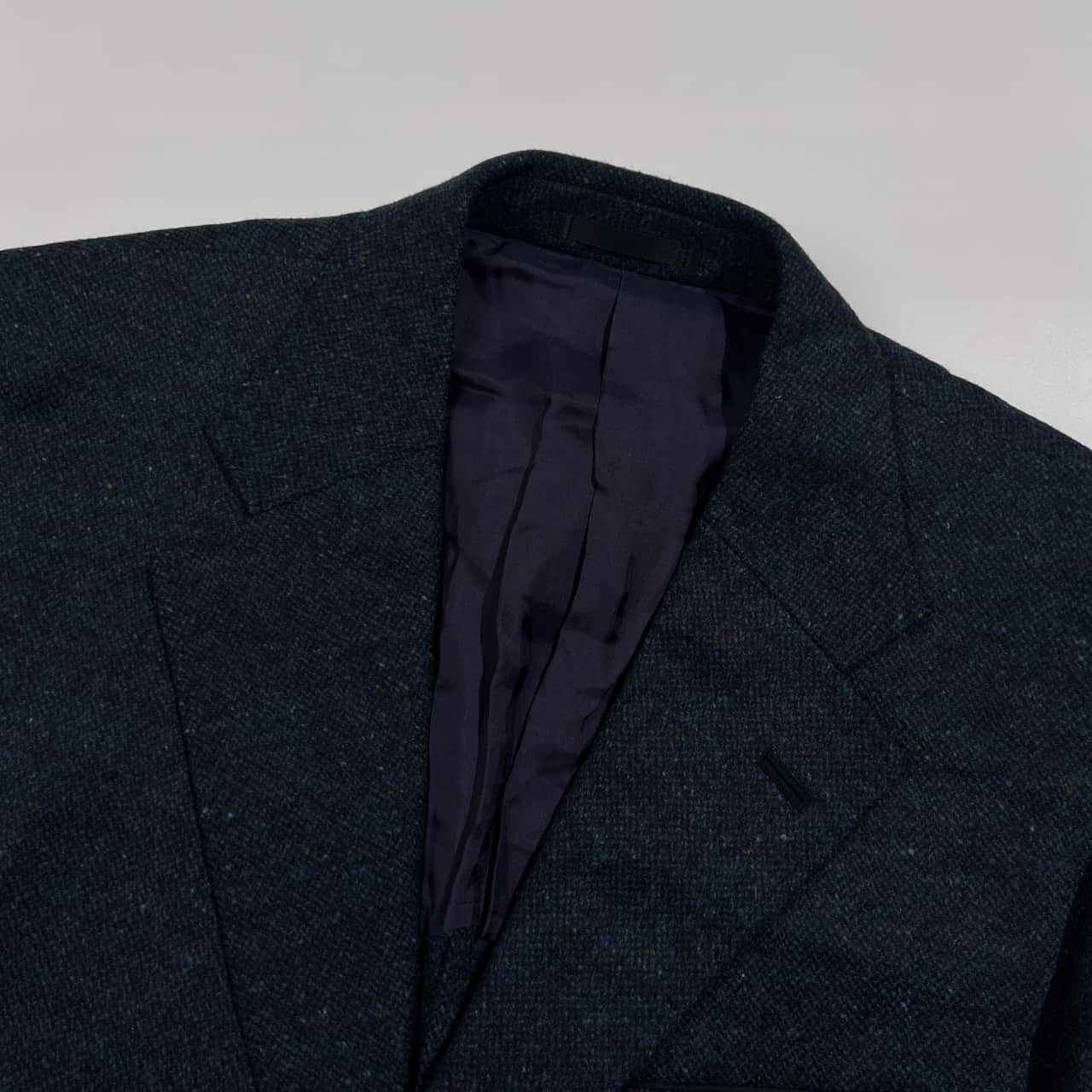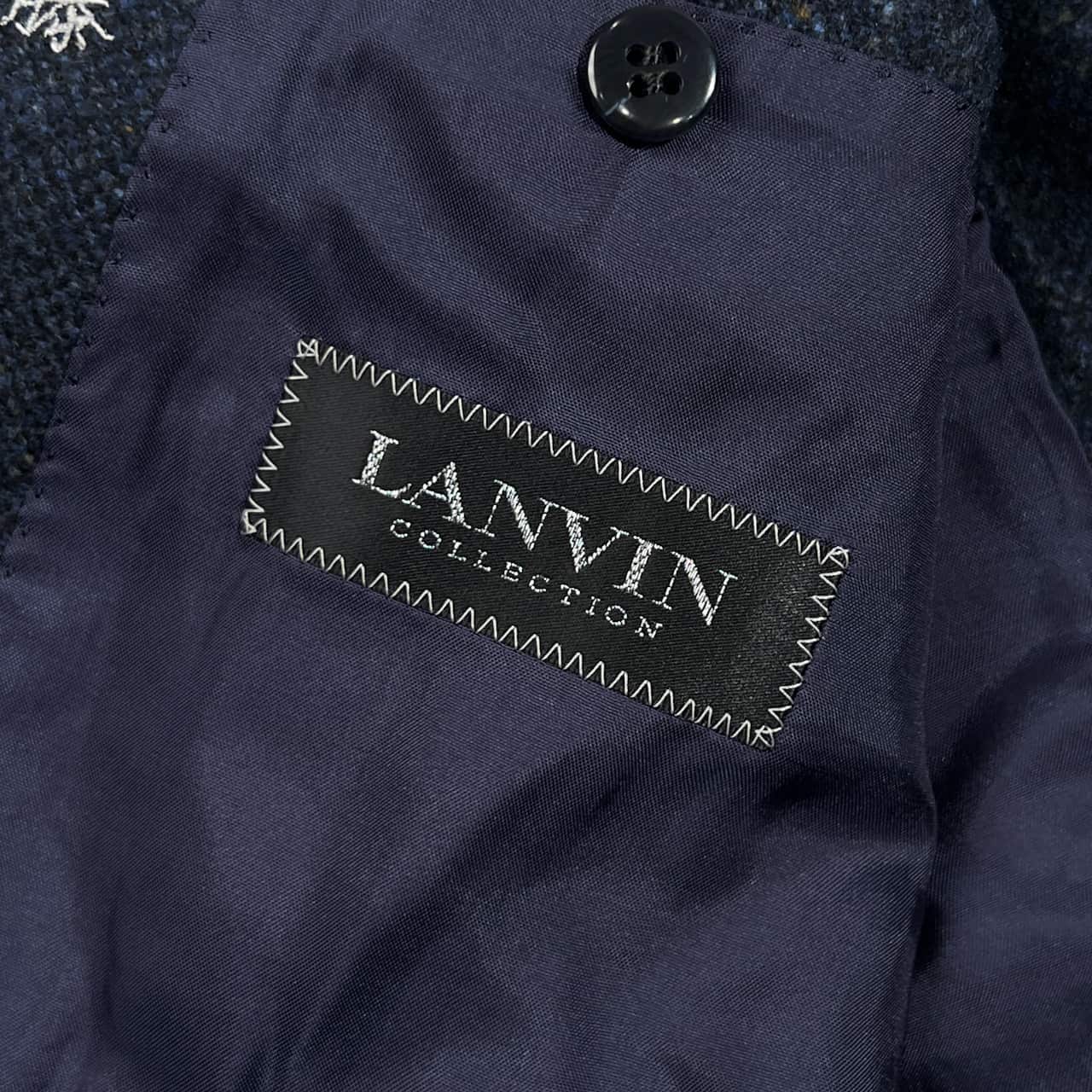 カシミヤ混 LANVIN COLLECTION ランバン 背抜き 2B ネップ風 テーラードジャケット R50-46/ネイビー系 メンズ