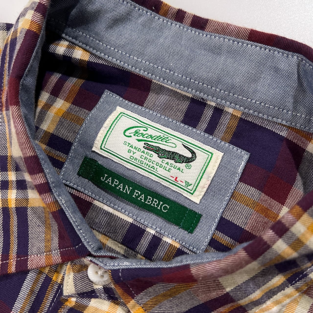 Crocodile クロコダイル 日本製生地 チェック 長袖シャツ サイズ L /メンズ/パープル系×イエロー系