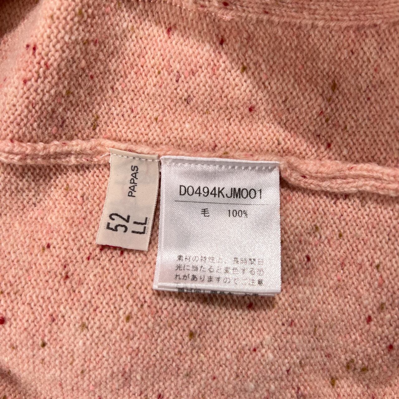Papas パパス ジップアップ ネップ ウールニット ジャケット サイズ 50 L /メンズ/ピンク/日本製