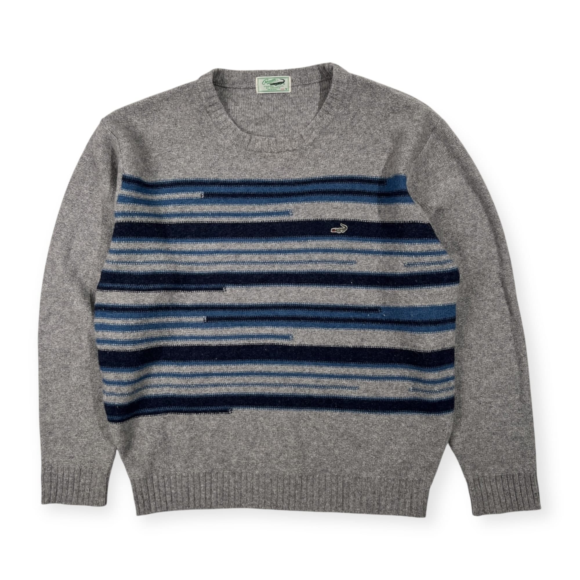 Crocodile クロコダイル ボーダー風 ウールニットセーター サイズ LL /メンズ/グレー×ブルーネイビー系