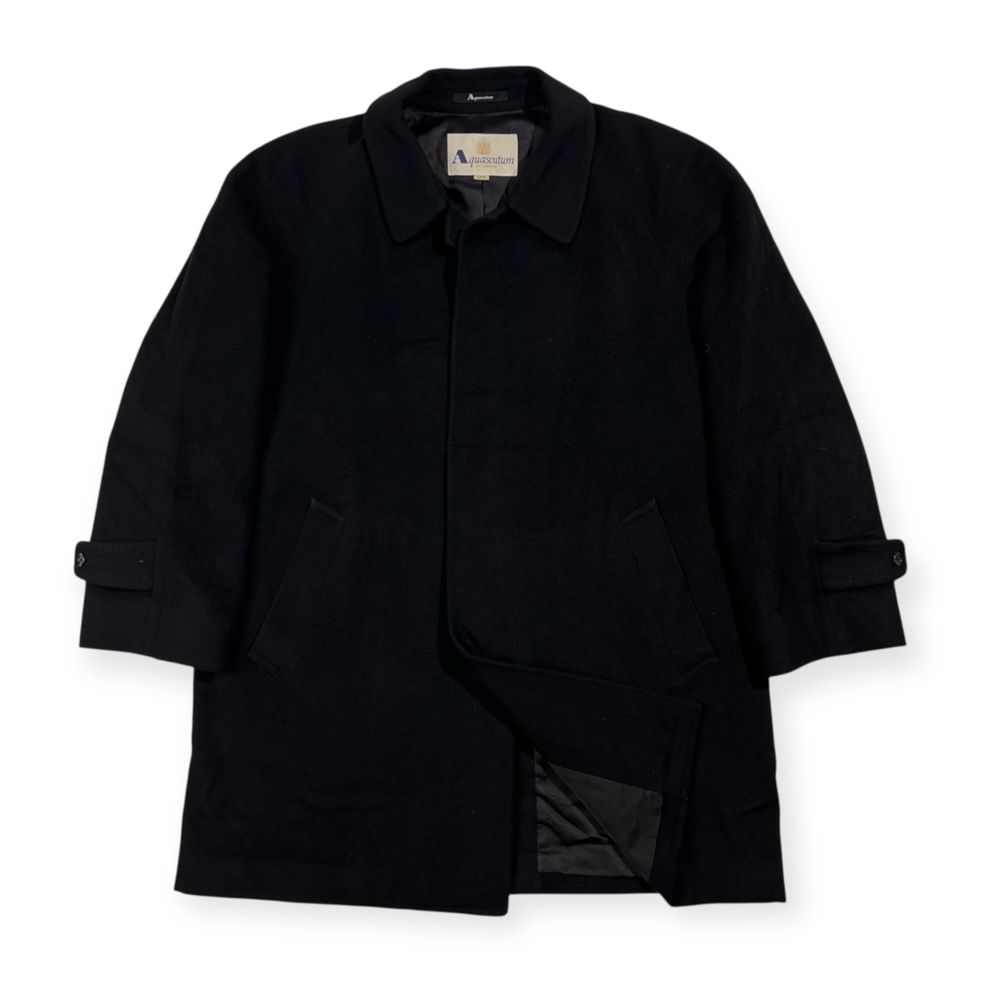 カシミヤ100% 90s Aquascutum アクアスキュータム 比翼 ステンカラーコート サイズ L /ブラック/レナウン/ビンテージ