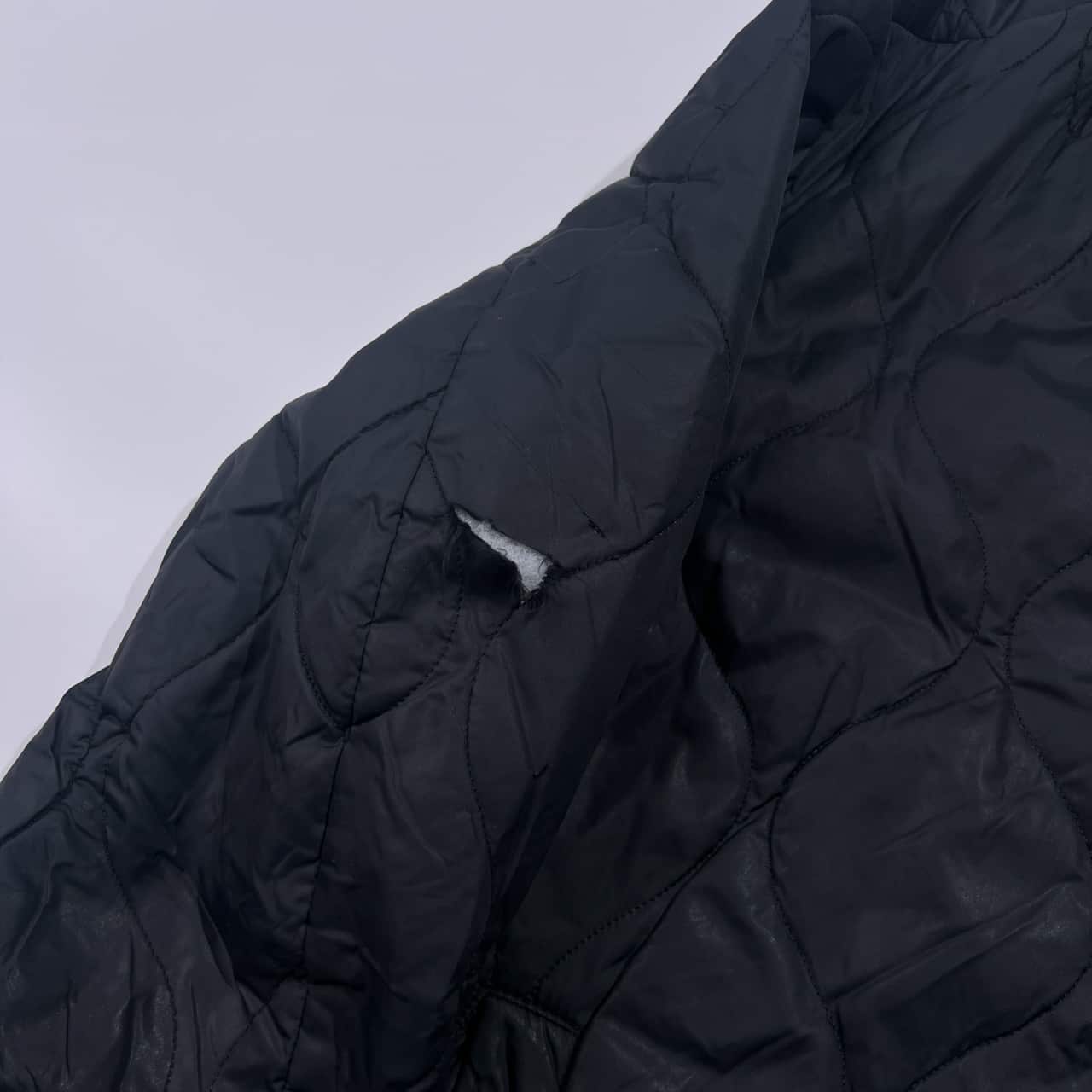 袖に破れ、ジップの飾りに使用感、生地にテカリのようなうすよごれがあります。コンデションについての詳細は画像をご参照ください
