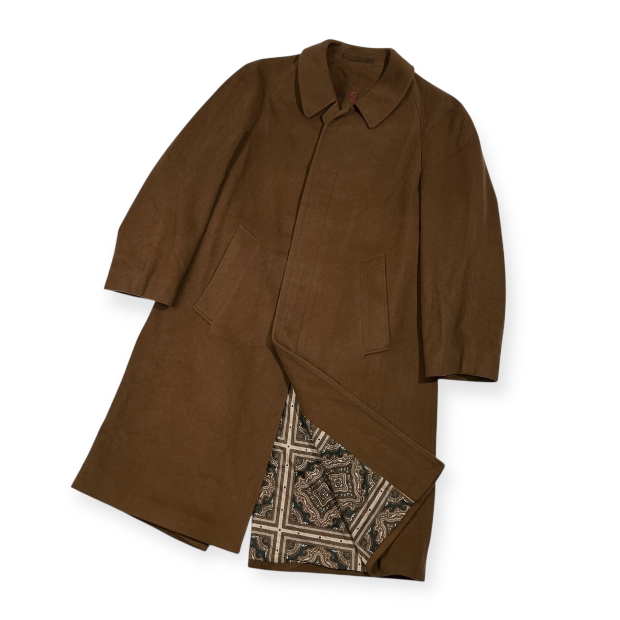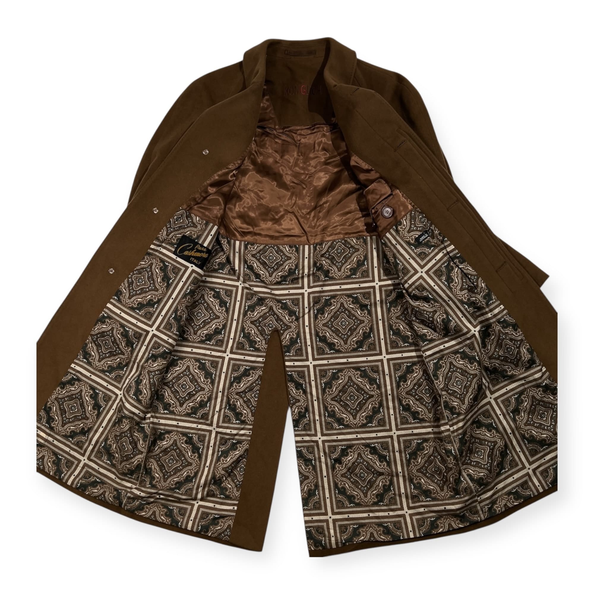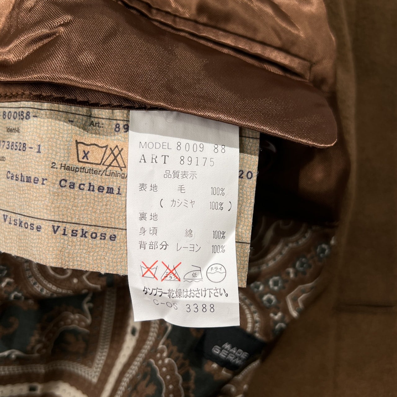 カシミヤ100% ドイツ製 高級 KONIGLICH 裏地総柄 ロング コート 比翼 ステンカラー サイズ S /キャメル/メンズ/カシミア